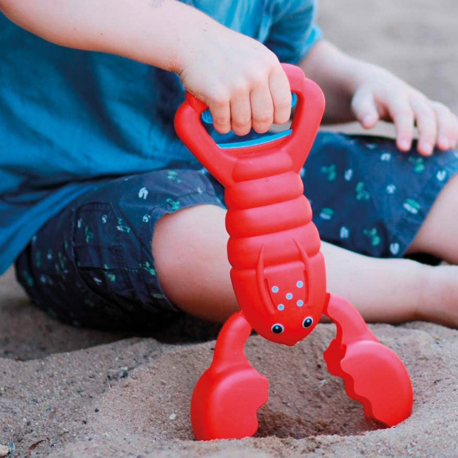 Perfetto gioco da spiaggia e da giardino, questo simpatico astice muove le chele grazie a una leggera pressione sulla maniglia, per scavare e raccogliere ghiaia e sabbia.