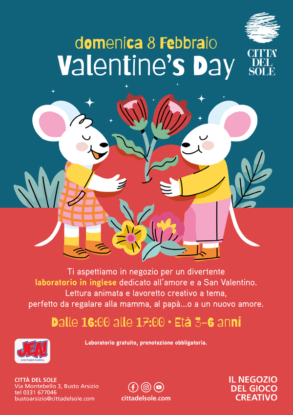 Ti aspettiamo in negozio per un divertente laboratorio in inglese dedicato all’amore e a San Valentino. Lettura animata e lavoretto creativo a tema, perfetto da regalare alla mamma, al papà...o a un nuovo amore.