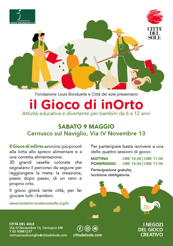 Il Gioco di inOrto è un percorso divertente che avvicina i più piccoli ai temi della lotta allo spreco alimentare e della corretta alimentazione. Un grande tabellone composto da 30 caselle colorate guida i bambini lungo un percorso che li porterà, passo dopo passo, a creare un vero e proprio orto.