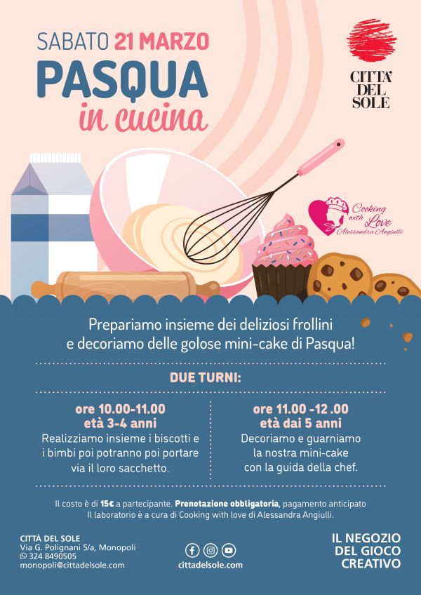 Il laboratorio è a cura di Cooking with love di Alessandra Angiulli.