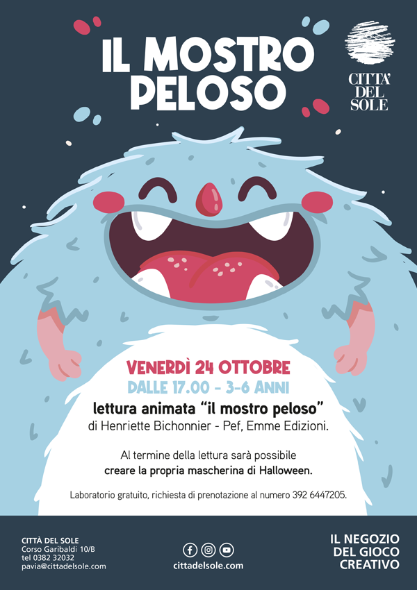 Lettura animata de “Il mostro peloso” di Henriette Bichonnier - Pef, Emme Edizioni. Al termine della lettura sarà possibile creare la propria mascherina di Halloween.