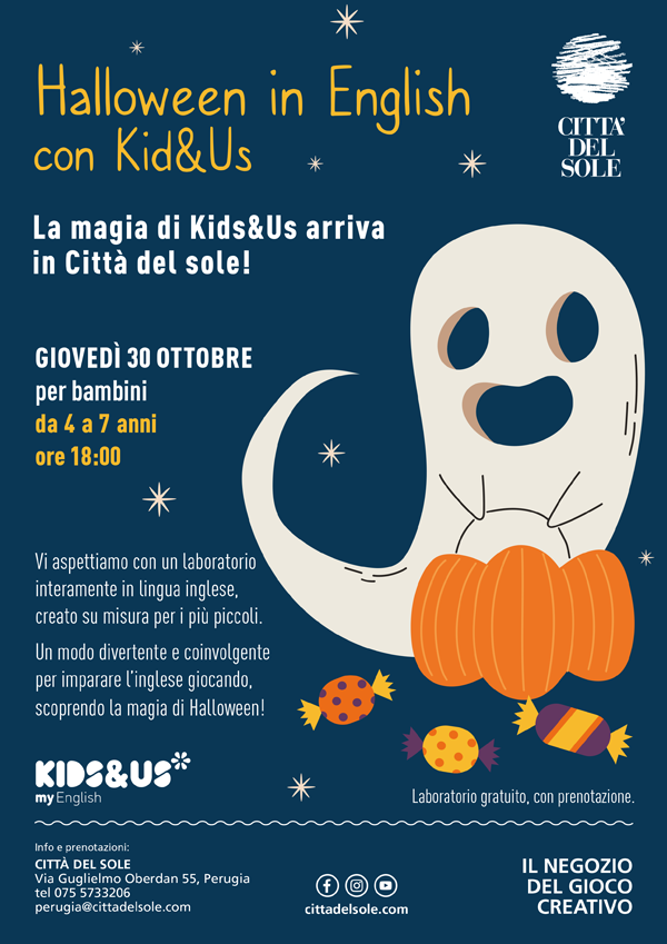 Vi aspettiamo con un laboratorio interamente in lingua inglese, creato su misura per i più piccoli. Un modo divertente e coinvolgente per imparare l’inglese giocando, scoprendo la magia di Halloween.