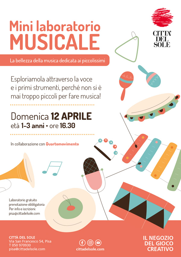 Laboratorio gratuito prenotazione obbligatoria. Per info e iscrizioni: pisa@cittadelsole.com.