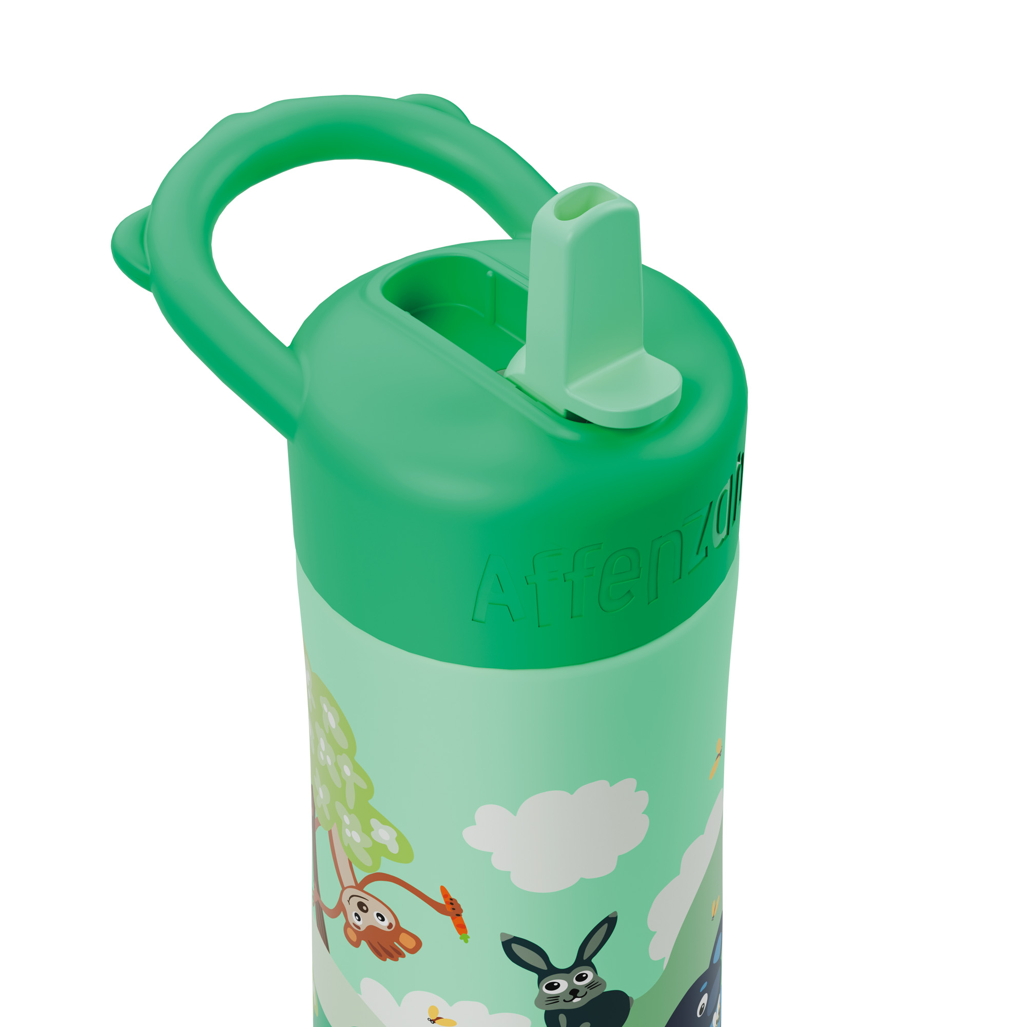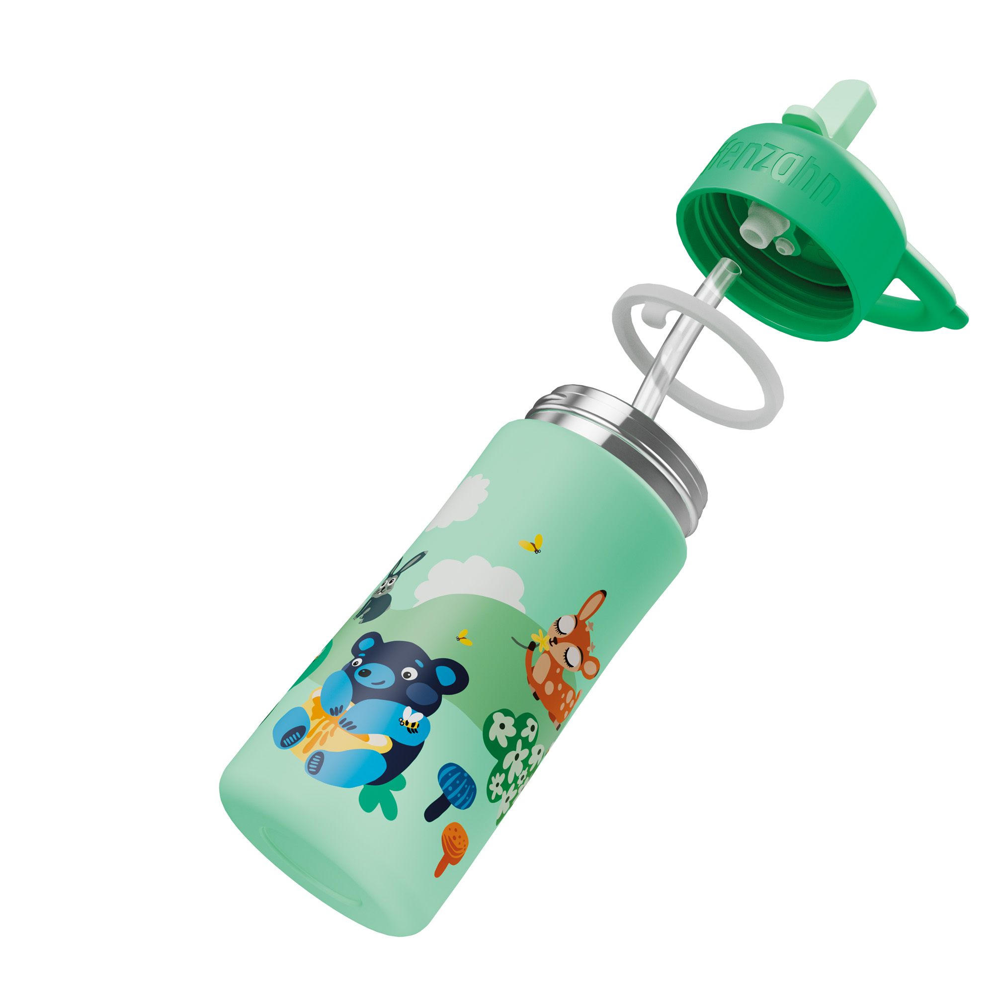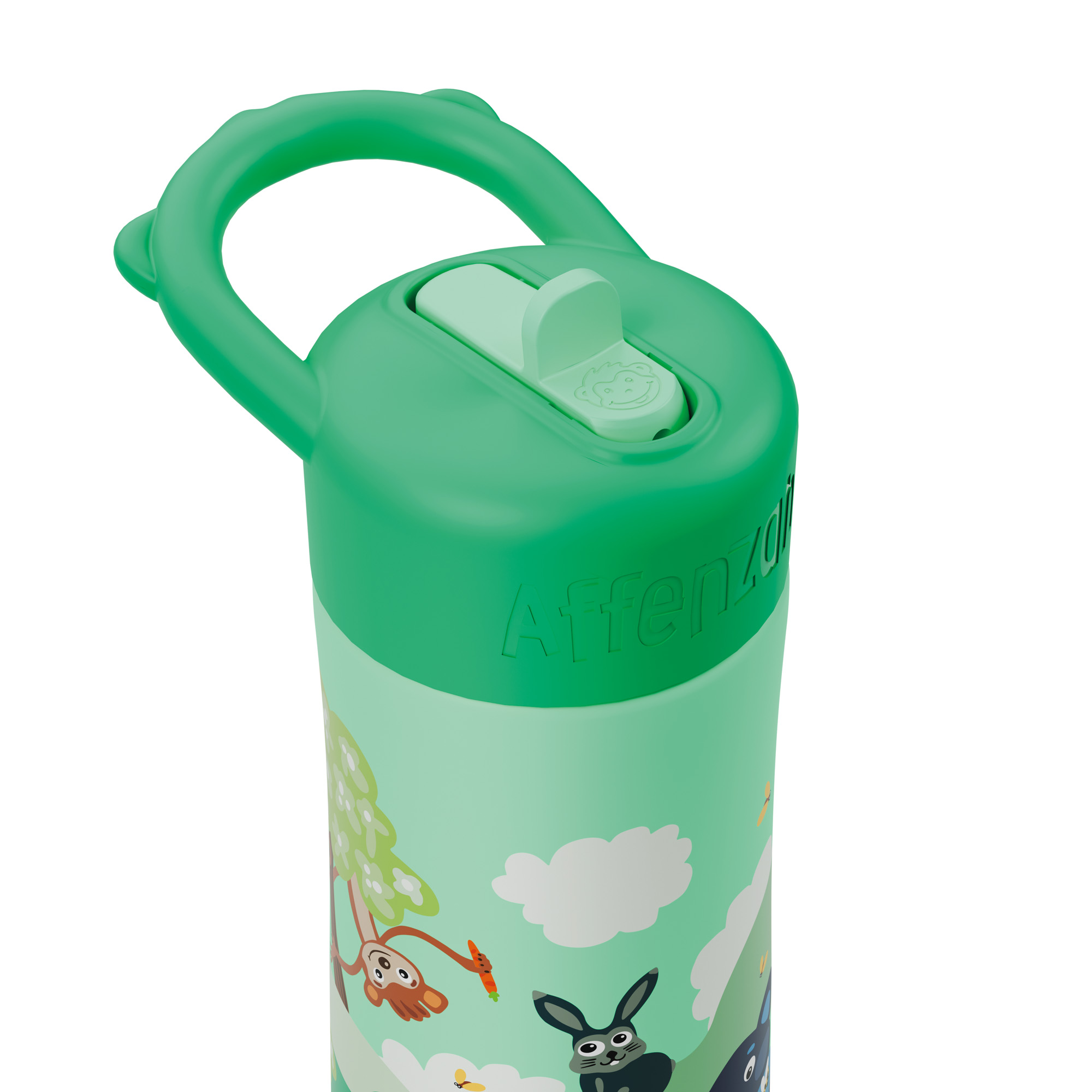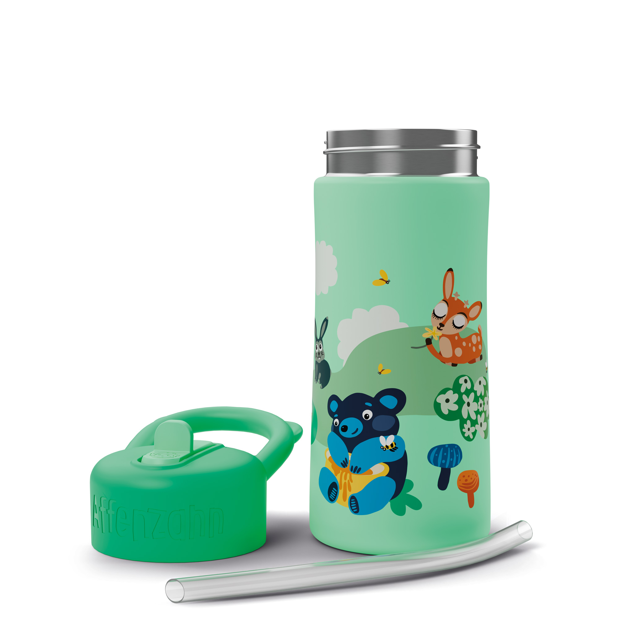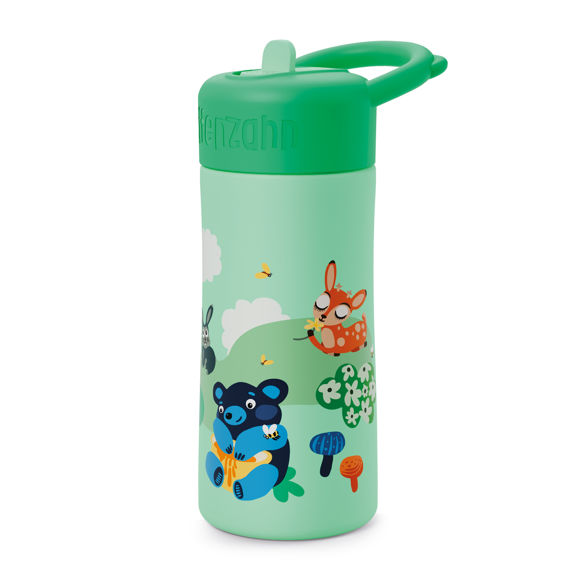 Una bella borraccia colorata e leggera, a tema foresta, per bere con la cannuccia o direttamente dalla bottiglia. Facile da pulire grazie allo spazzolino in dotazione, è realizzata con materiali resistenti che la rendono a prova di perdita. Un design accurato e adatto alle mani dei più piccoli la trasforma nella compagna ideale di gite, escursioni e giornate all'aperto. lavabile in lavastoviglie sino a 65° (il lavaggio a mano ne garantisce in ogni caso una maggiore durata). Peso circa 179 gr. Volume circa 0,43 litri.