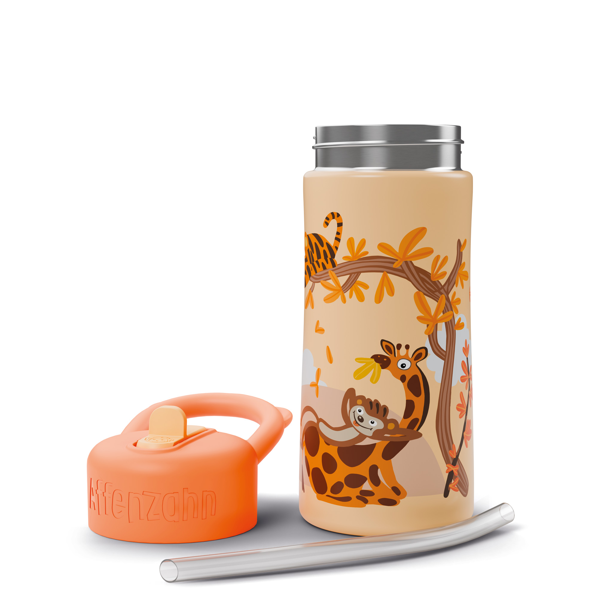 Una bella borraccia colorata e leggera, a tema savana, per bere con la cannuccia o direttamente dalla bottiglia. Facile da pulire grazie allo spazzolino in dotazione, è realizzata con materiali resistenti che la rendono a prova di perdita. Un design accurato e adatto alle mani dei più piccoli la trasforma nella compagna ideale di gite, escursioni e giornate all'aperto. lavabile in lavastoviglie sino a 65° (il lavaggio a mano ne garantisce in ogni caso una maggiore durata). Peso circa 179 gr. Volume circa 0,43 litri.