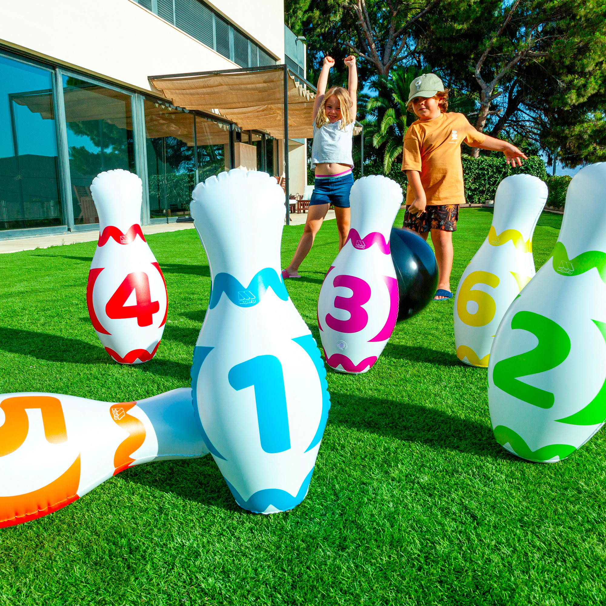 Sei birilli numerati alti 60 cm e 1 palla per divertenti sfide all’aperto. Perfetto per bambini a partire da 3 anni, stimola la coordinazione, la precisione e il gioco di squadra, ed è realizzato con materiali sicuri e resistenti. Un’ottima scelta per giardino, terrazza, piscina, spiaggia o picnic in famiglia.