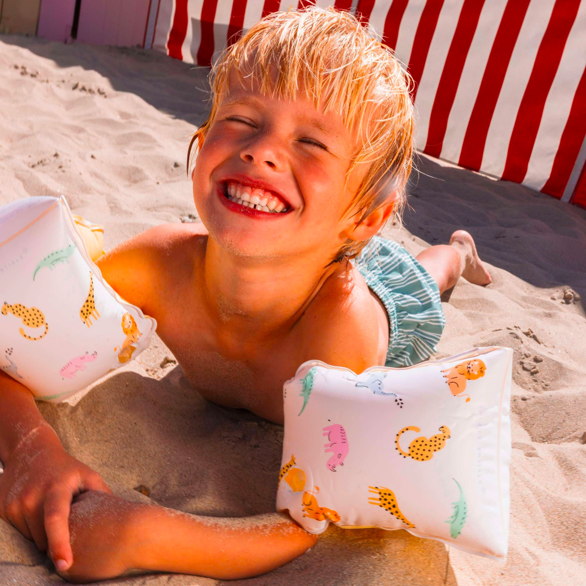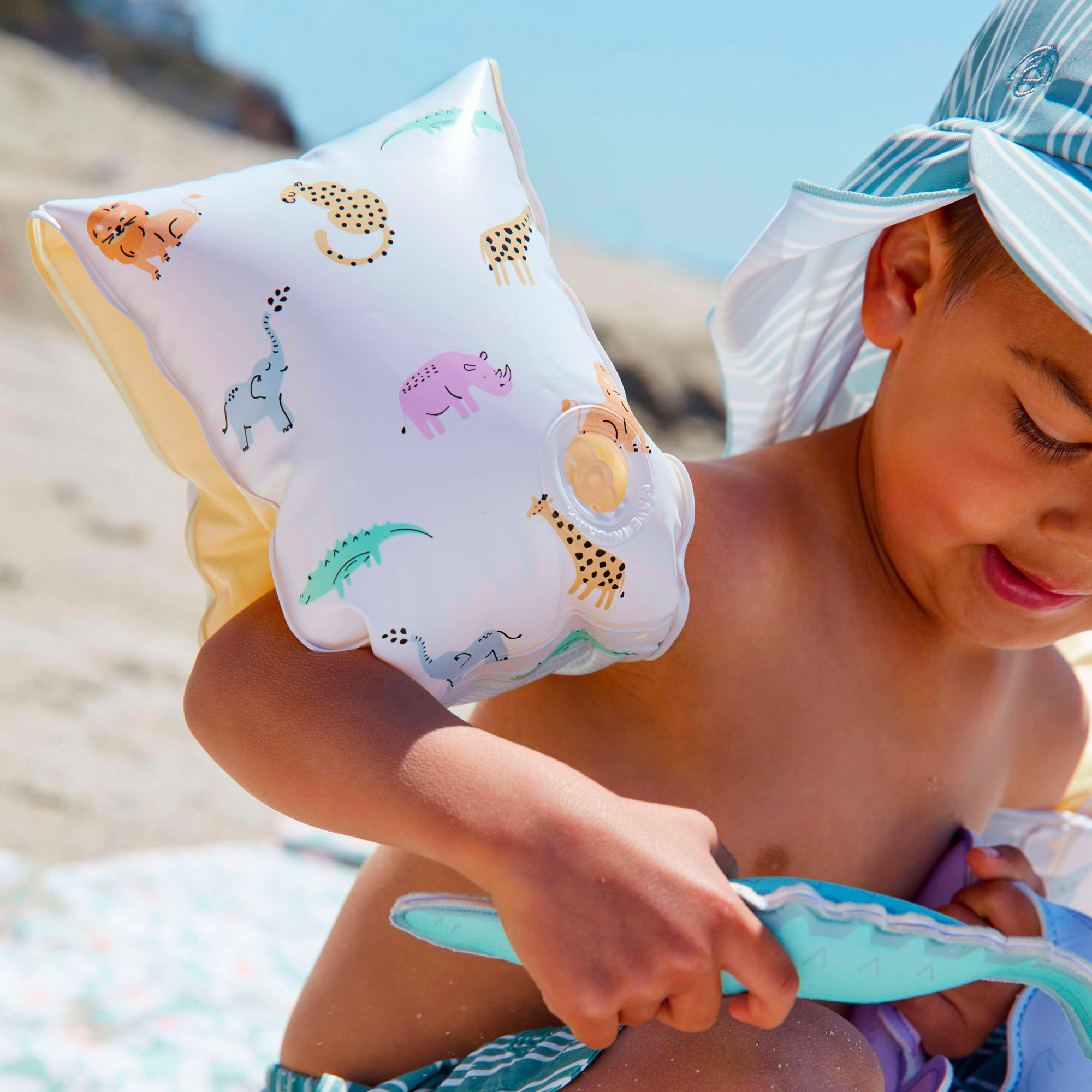 Comodi braccioli per bambini da 2 a 6 anni (da 15 a 30 kg), con un colorato decoro ad animali della giungla. Indispensabili per giocare in acqua, in piscina o al mare, sono progettati con due camere d'aria separate per garantire maggiore stabilità. Uniscono sicurezza, comfort e divertimento, aiutando i più piccoli ad acquisire disinvoltura in acqua.