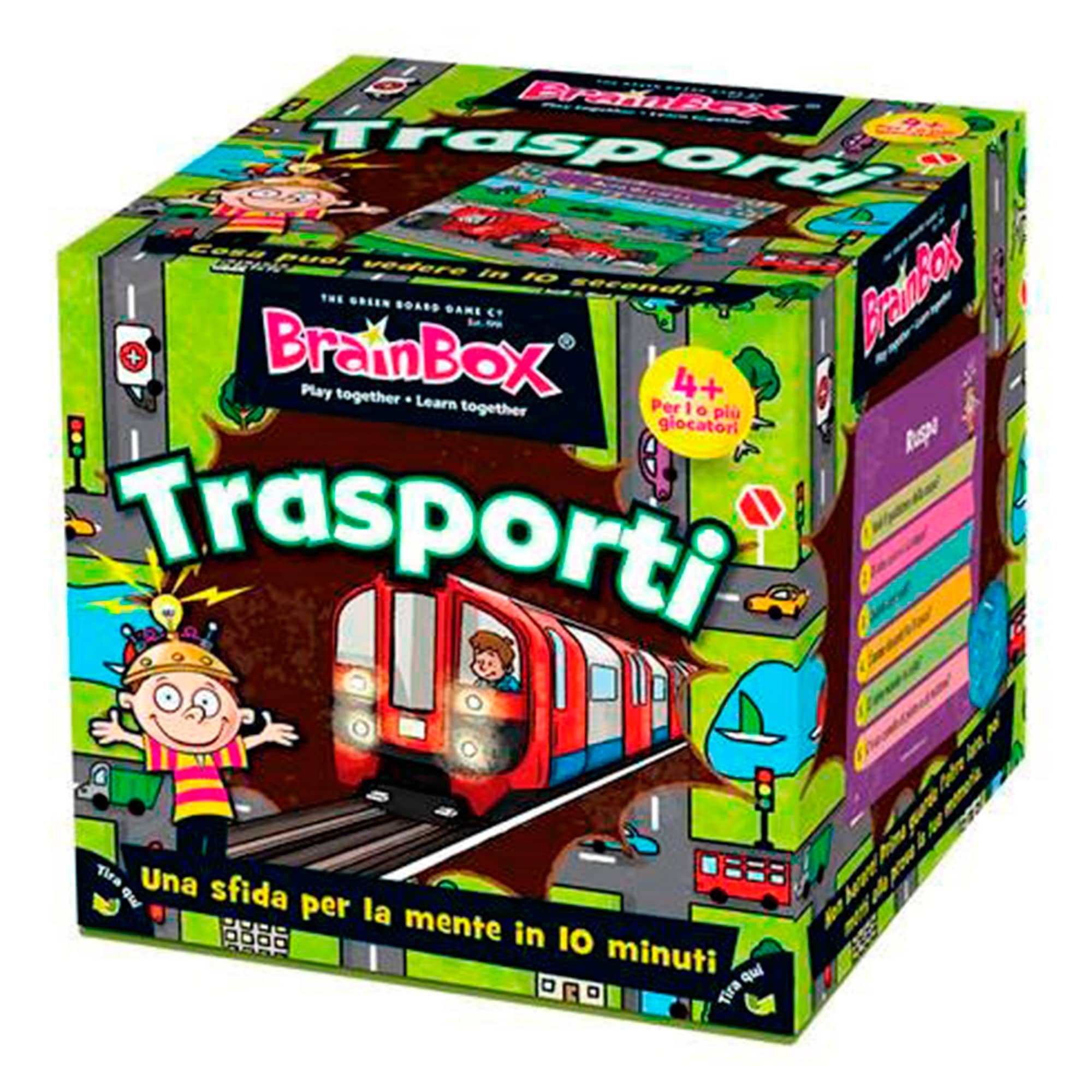 Brainbox trasporti è una una sfida per la mente in 10 secondi. La sfida è memorizzare in 10 secondi il contenuto della carta e rispondere correttamente alle domande sul retro della carta, selezionata dal lancio di un dado. Se si risponde correttamente alla domanda, la scheda viene conservata. Vince chi al termine della partita è riuscito a conservare più tessere. Un gioco per tutta la famiglia, per uno o più giocatori.