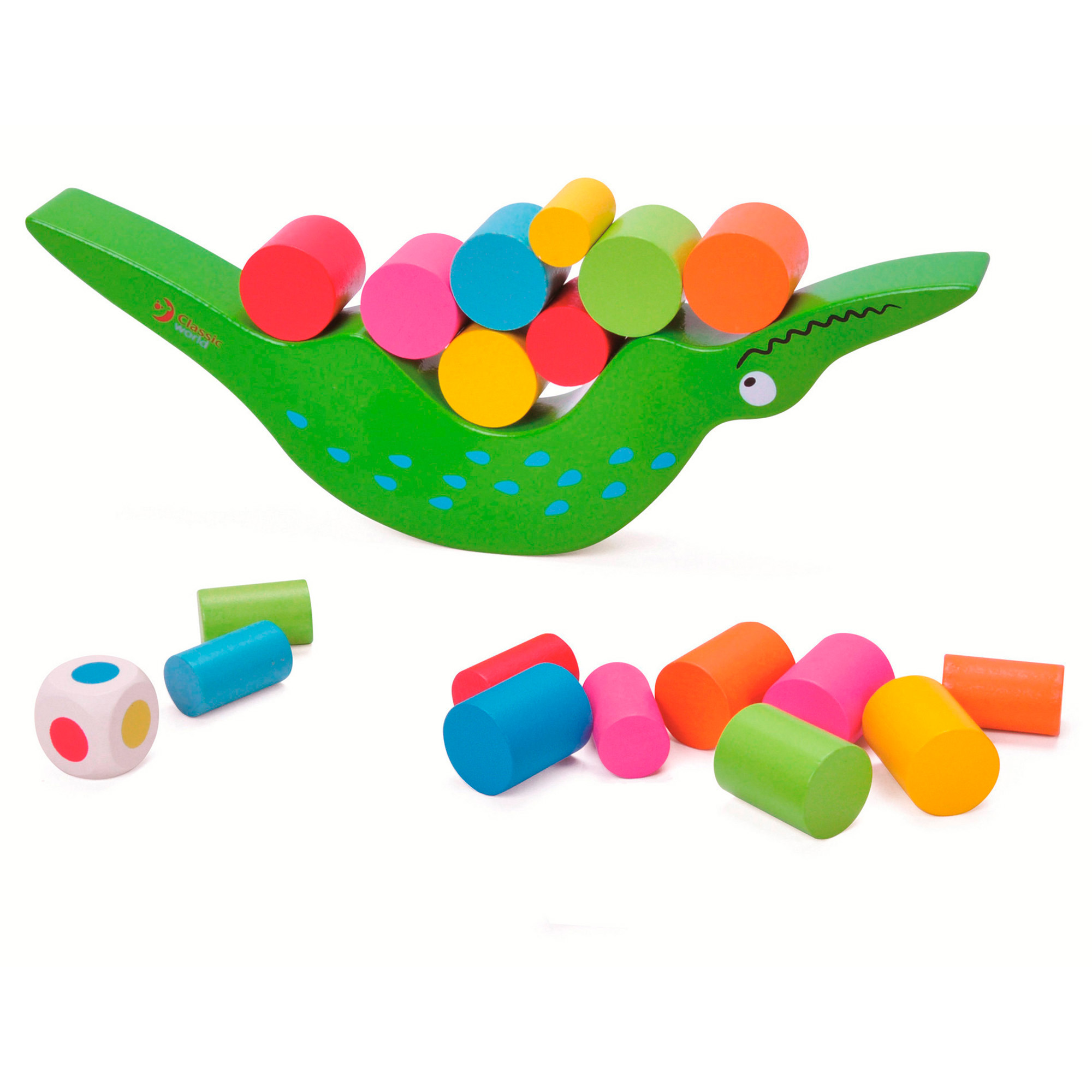 Per bilanciare correttamente il simpatico coccodrillo bisognerà disporre con precisione gli elementi in legno colorato, seguendo le indicazioni del dado. Un gioco di destrezza dall'apparenza semplice che si rivela un ottimo strumento per migliorare la coordinazione occhio-mano, le capacità motorie e il riconoscimento delle forme geometriche, il tutto con gran divertimento.