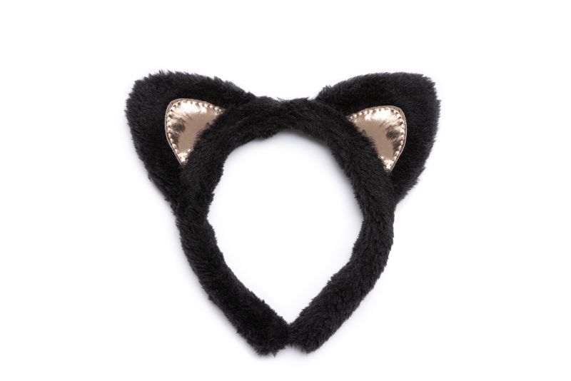 Il completo perfetto per tutte le bimbe appassionate di felini. L'abito ha un elegante corpetto nero impreziosito da un musetto di gatto stampato in oro rosa e una scintillante gonna a brillantini dorati. Non manca neppure la coda per un effetto giocoso e un cerchietto con morbide orecchie da gatto pelose.