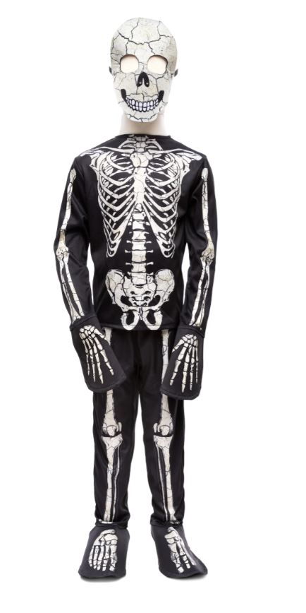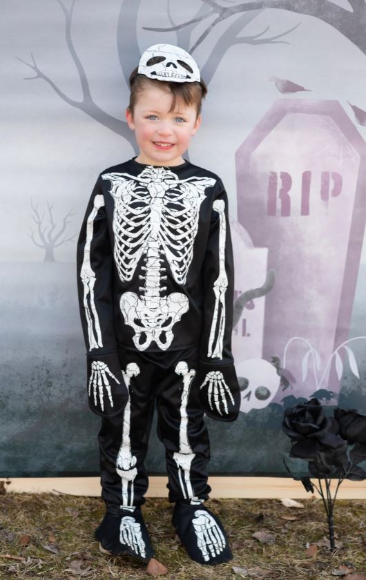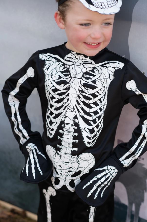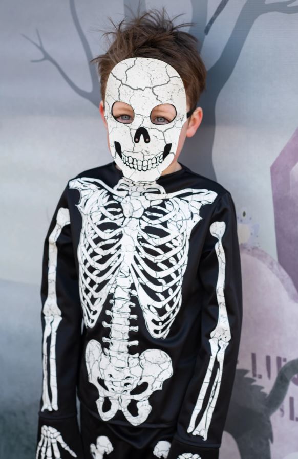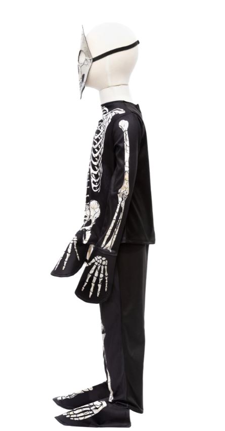 L'abbigliamento perfetto per una vera notte da brivido! Un costume realizzato con materiali dialta qualità, composto da maglietta a maniche lunghe e pantaloni con disegno di scheletro realizzato in specialicolori fosforescenti che si illuminano al buio. Una tenuta comoda e adatta anche a passeggiate all'aperto. La maschera da scheletro abbinata completa il set, aggiungendo un tocco davvero spettrale all'insieme. Taglia 5-6 anni.