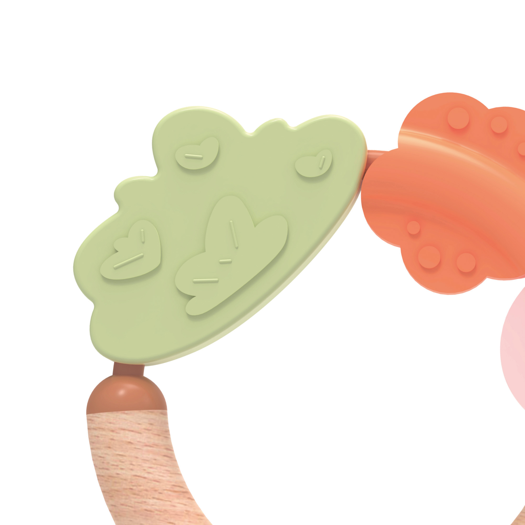 Un gioco per la dentizione perfetto anche da maneggiare. Stimola i 5 sensi del bambino e, grazie alla sua piacevole consistenza tra il morbido e il duro, è un rilassante gioco da mordere. La diversa superficie, nei diversi punti dell'anello da mordere, è uno stimolo sensoriale ulteriore per il bambino che istintivamente trova la parte preferita da mordicchiare in base al proprio gusto.