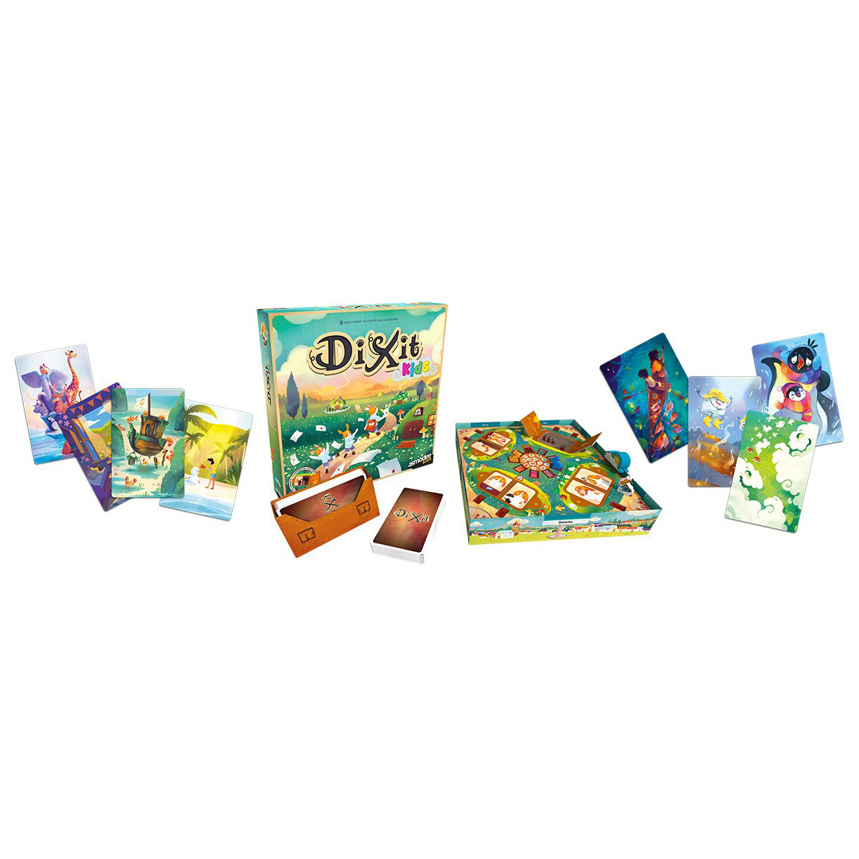 Le carte di Dixit Kids sono state adattate per i più piccoli e sono compatibili con altri giochi dell’universo Dixit.