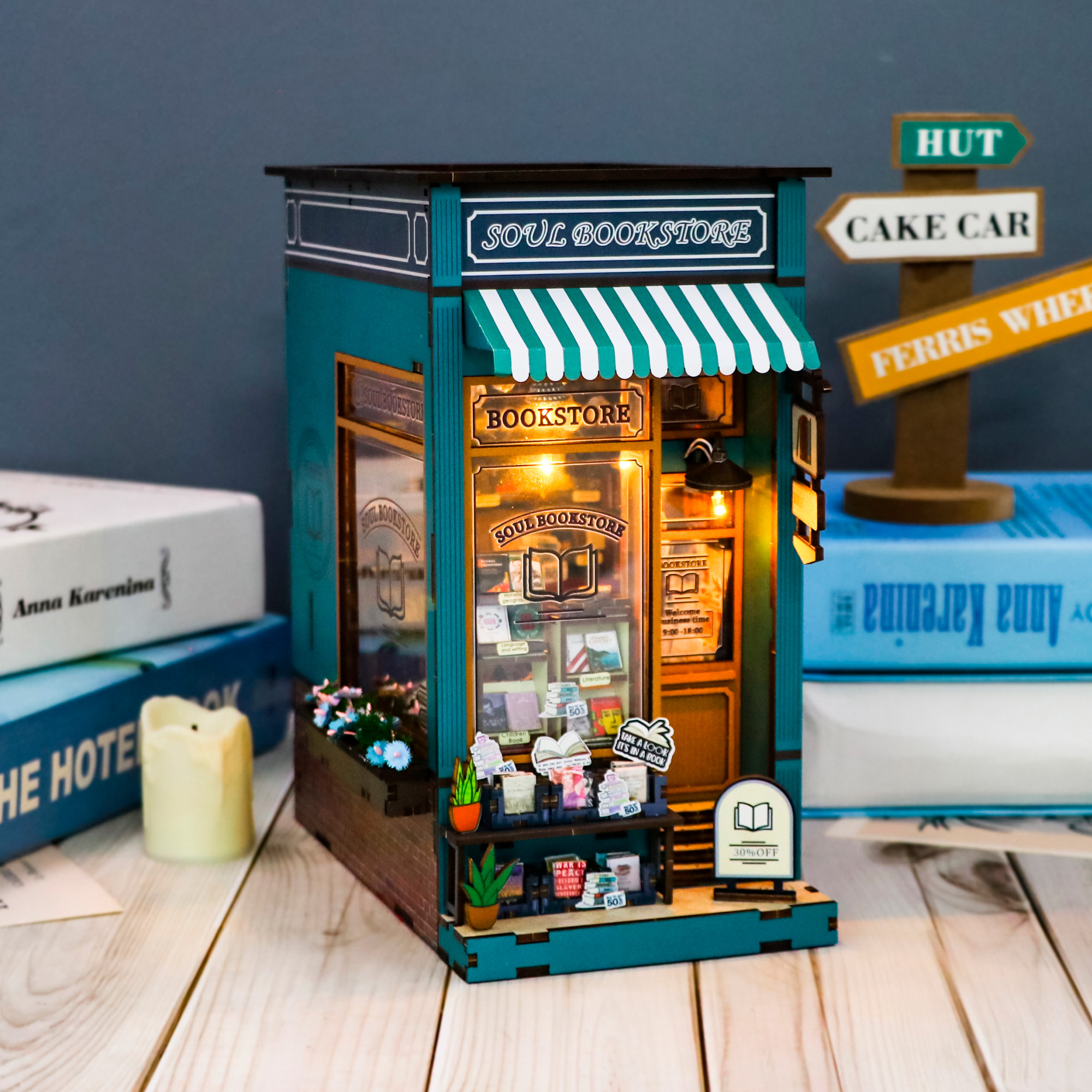 I Book Nook sono mondi in miniatura pensati per animare e decorare la vostra libreria. Posizionati come fermalibri sugli scaffali, svelano vicoli segreti, sentieri incantati, botteghe accoglienti o scorci di città magiche, veri e propri paesaggi da fiaba. Le luci LED integrate animano ogni scena, trasformando ogni Book Nook in un oggetto decorativo unico, affascinante e ricco di dettagli. Ogni modello è realizzato in legno e facile da assemblare, grazie alle istruzioni illustrate incluse. Ideali per lettori, creativi o semplicemente per chi ama lasciarsi stupire. Un regalo originale anche da collezionare.