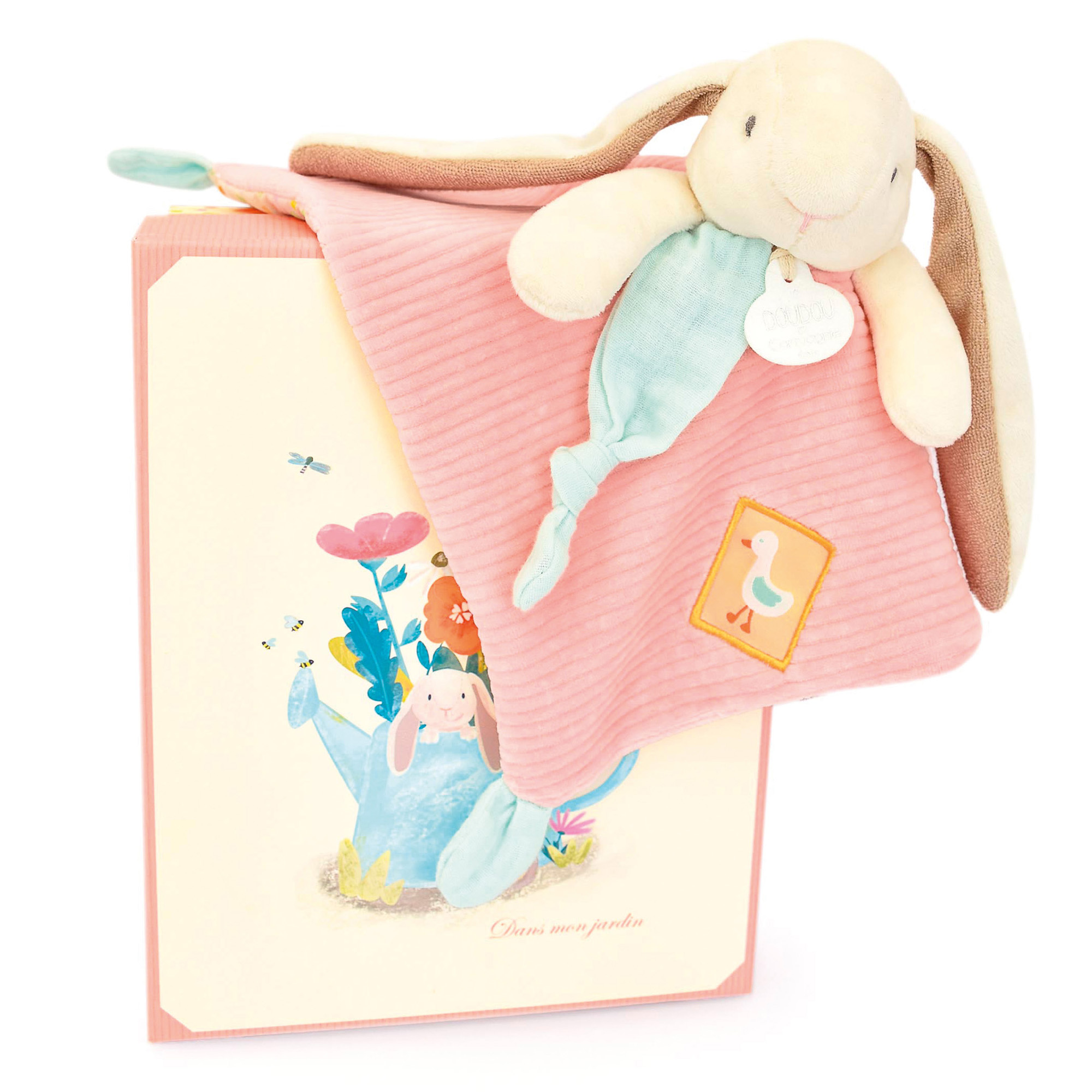 Questo dudu piatto a forma di coniglio è pensato per stimolare i sensi del neonato grazie alla varietà di tessuti e texture: morbido velluto a coste, colletto in mussola di cotone e ricamo sul fronte. Le lunghe orecchie, facili da afferrare, invitano al gioco e alla scoperta. Confezionato in una scatola regalo riutilizzabile, perfetta per conservare i primi ricordi del bambino. Sul retro, due mini-storie da leggere e condividere, per rendere ogni momento ancora più speciale.