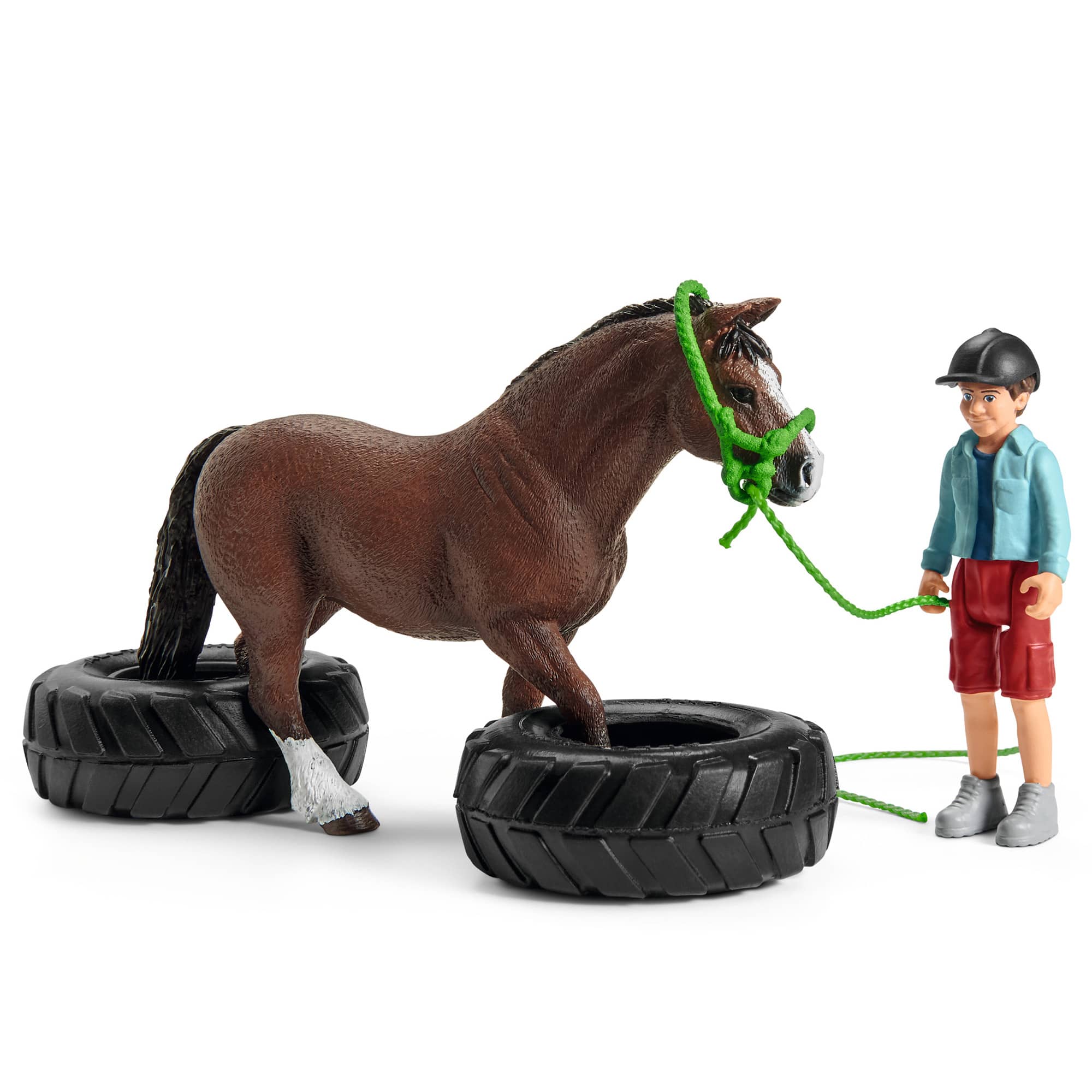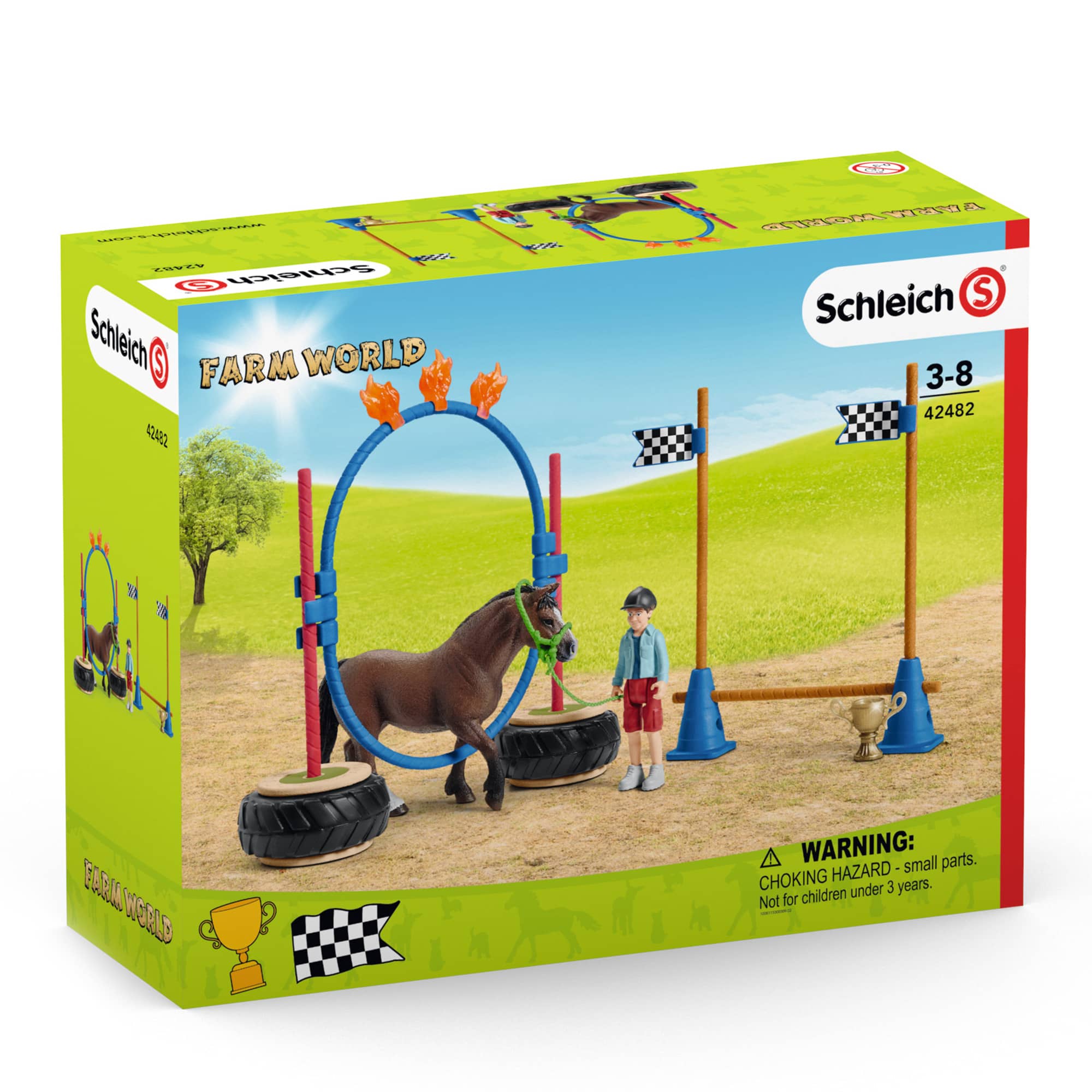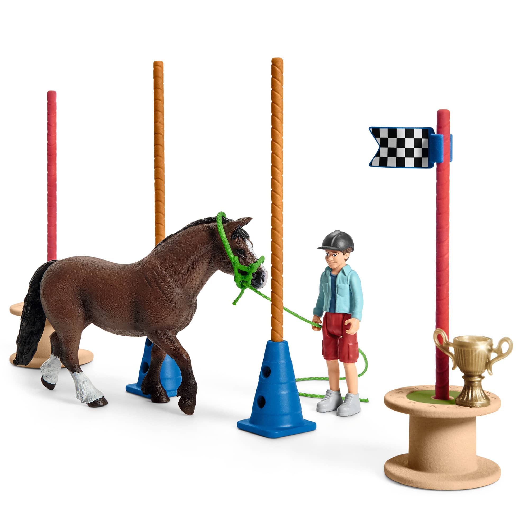 Dopo che il pony ha superato l'addestramento, può partecipare alle gare di Agility. C’è tanto entusiasmo, ma anche la tensione è alta: come sarà strutturato il percorso? Il pony avrà paura o riuscirà a superare tranquillamente gli ostacoli? Il percorso Agility regala tante emozioni proprio come le cavalcate! Curiosità: Per le gare di Agility è necessario aver seguito un addestramento completo. Tutte le figure Schleich, modellate nei minimi dettagli e dipinte a mano, garantiscono momenti di gioco di elevato valore pedagogico.