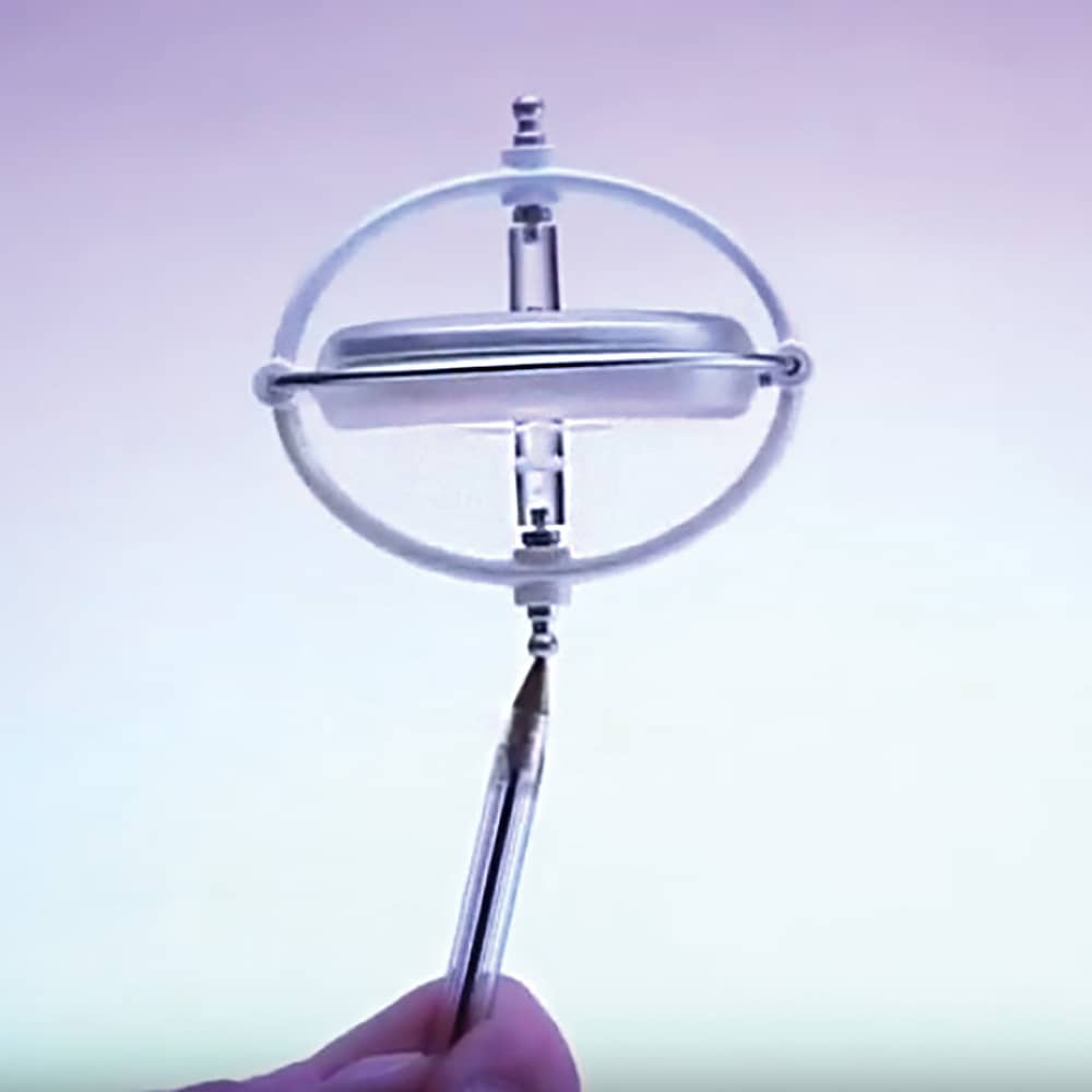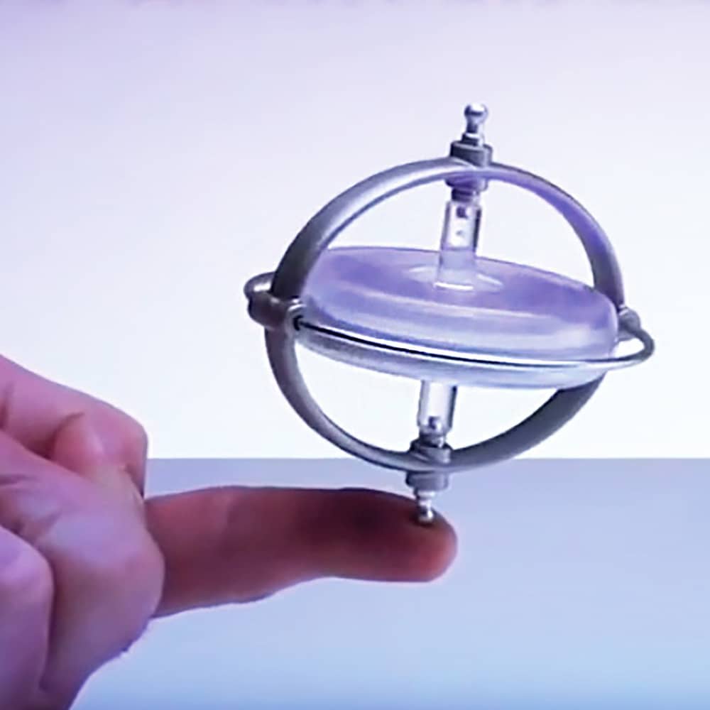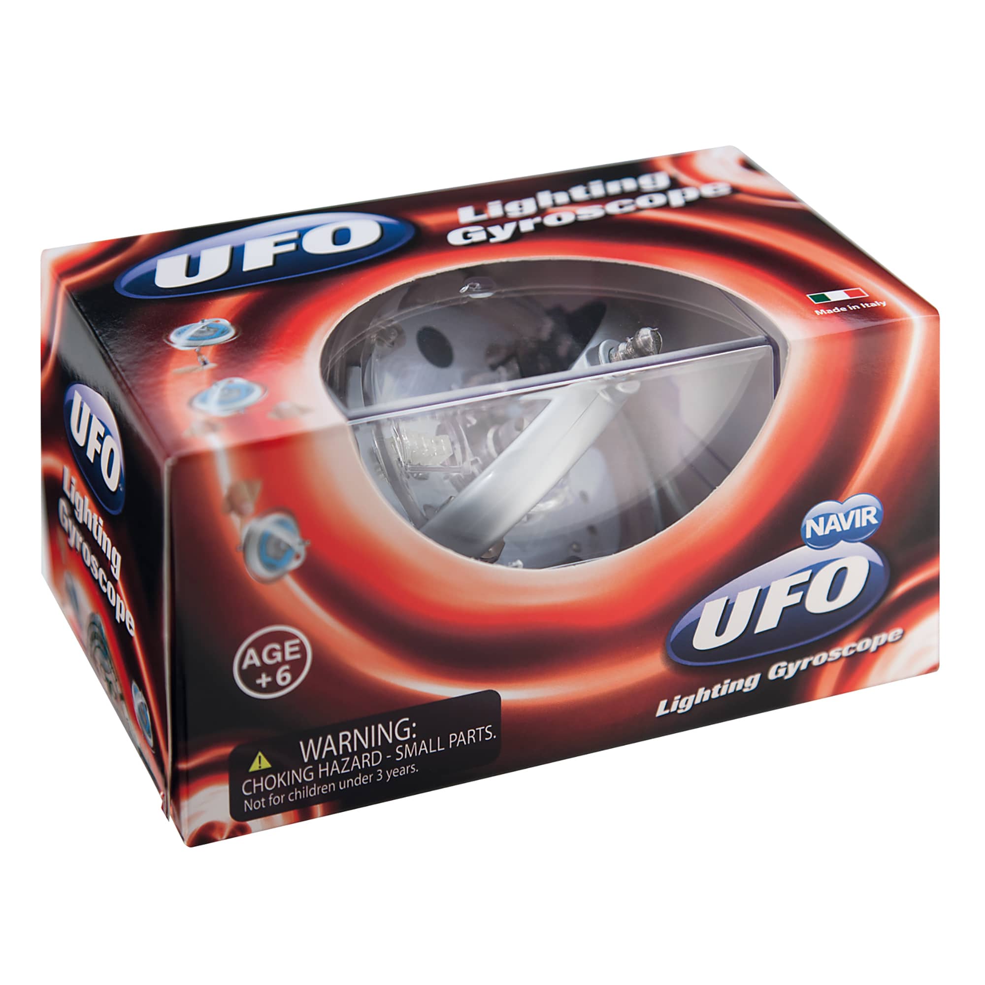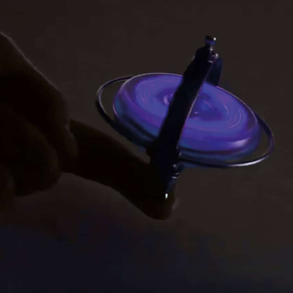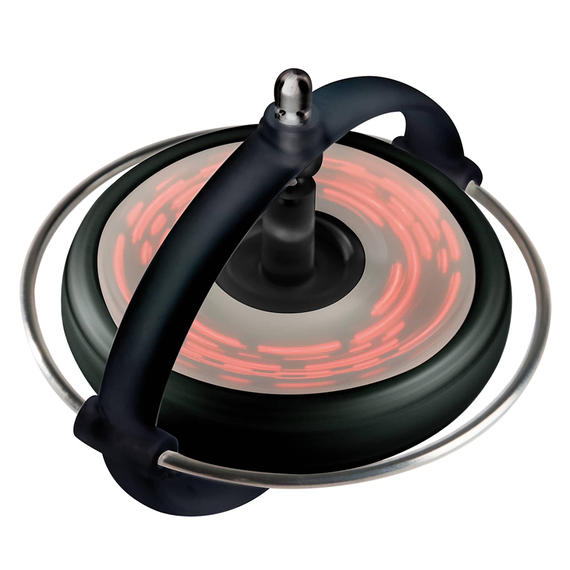 Al fisico francese J. Foucault siamo debitori non solo del pendolo che porta il suo nome, ma anche del giroscopio, che egli inventò (e battezzò), utilizzandolo nelle sue ricerche sulla rotazione terrestre. Da allora il giroscopio è sempre stato il giocattolo scientifico per eccellenza. Strumento di precisione, sfida la forza di gravità rimanendo in equilibrio in qualsiasi posizione. Dotato di rotore luminoso a 5 LED. Funziona con la cordicella inclusa nella confezione. Batterie LR44.