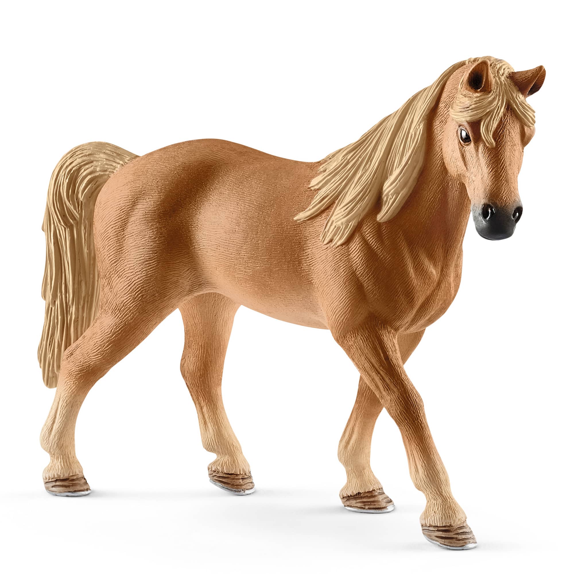 I cavalli Tennessee Walker hanno degli zoccoli particolarmente lunghi e piatti, che non vengono ferrati né pareggiati. Questa caratteristica influenza le loro andature tipiche: il walk (passo piano), il running walk (passo veloce) e il canter (galoppo morbido). Curiosità: Il Tennessee Walker padroneggia l'andatura chiamata walk, simile al tolt del cavallo islandese. Tutte le figure Schleich, modellate nei minimi dettagli e dipinte a mano, garantiscono momenti di gioco di elevato valore pedagogico.
