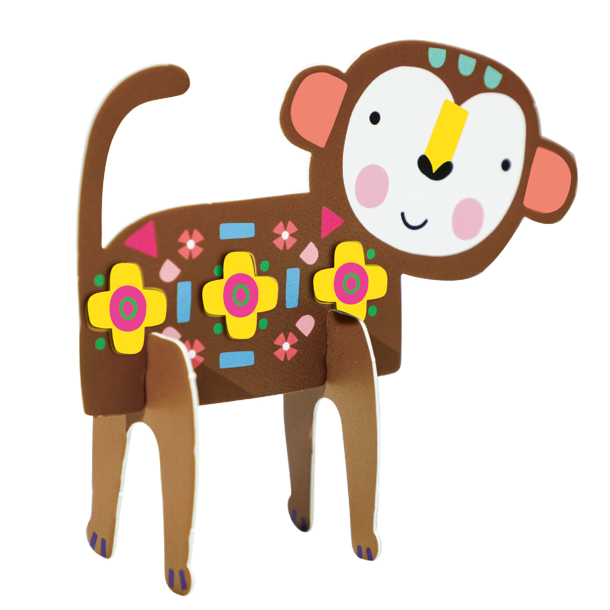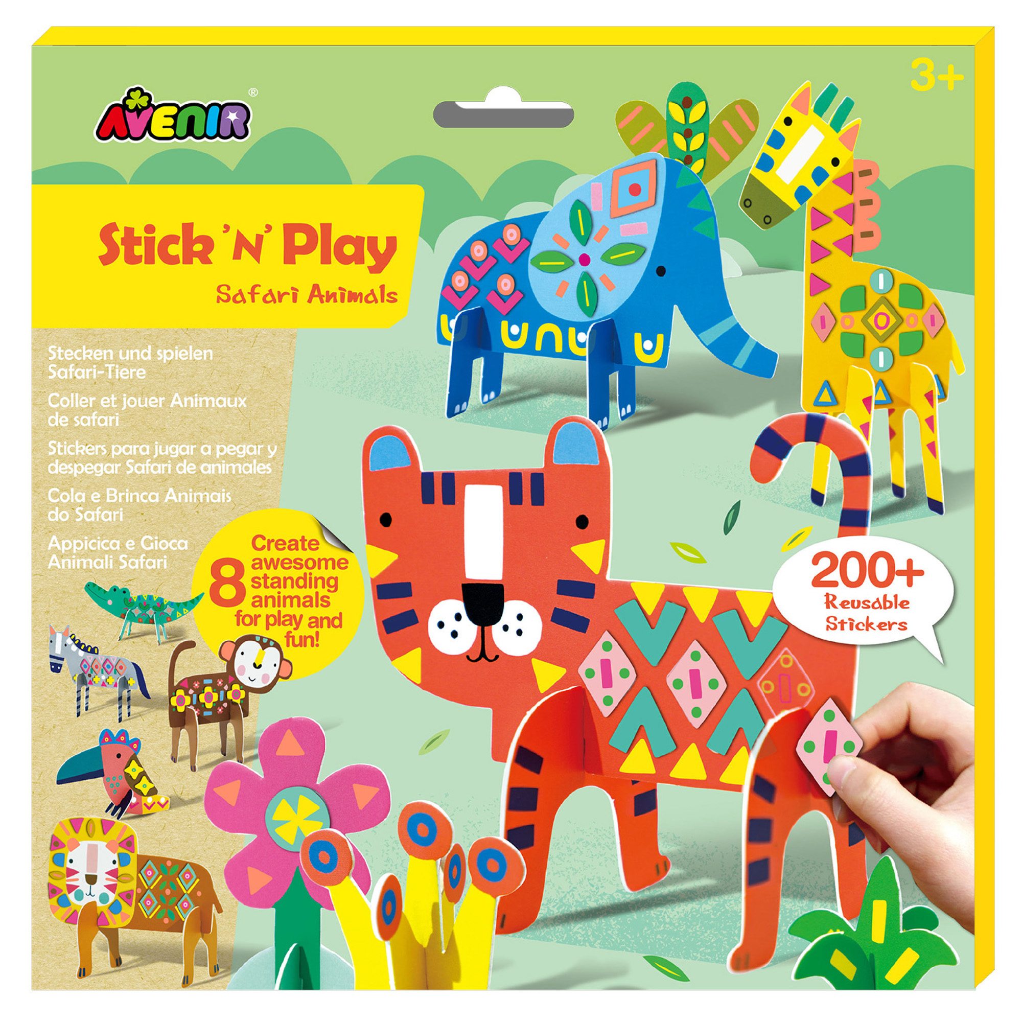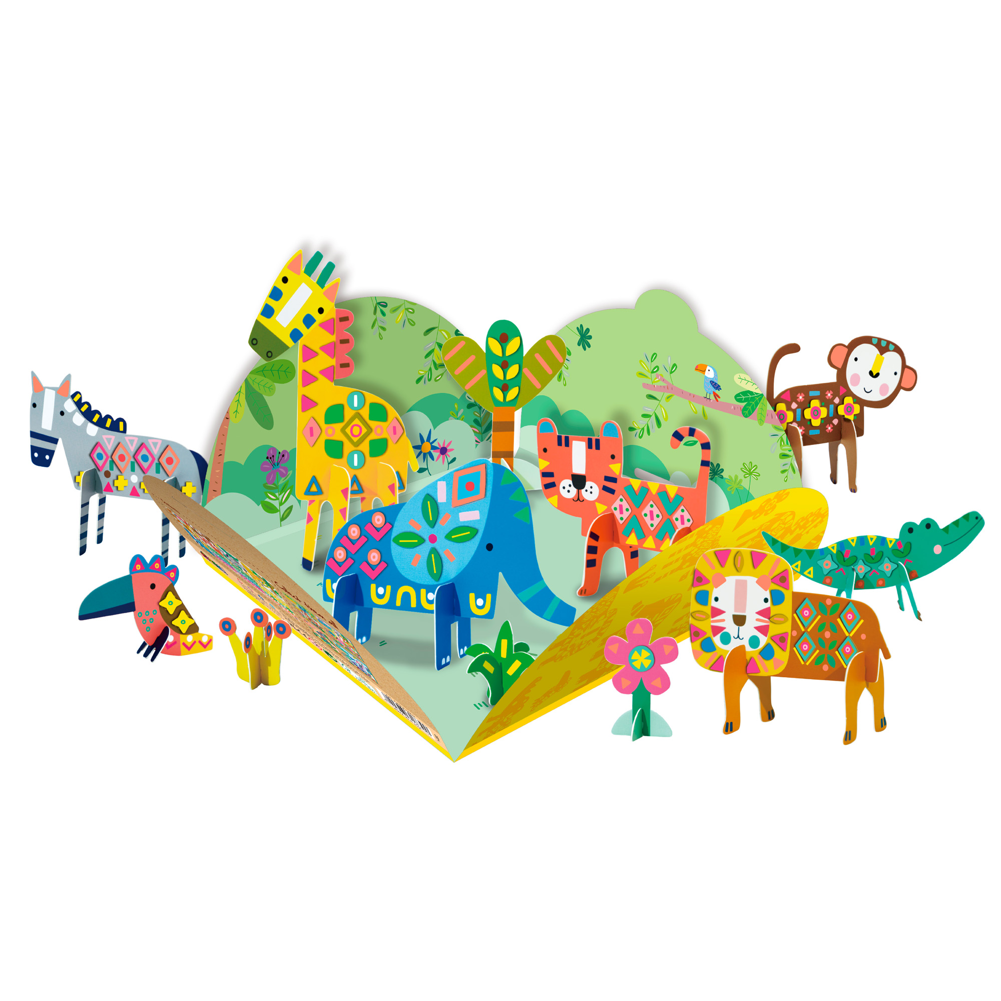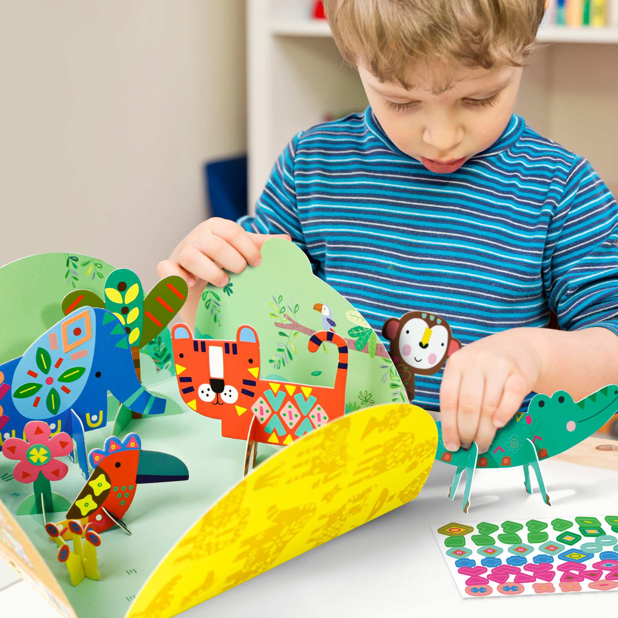 Schede illustrate e pre-sagomate da staccare per realizzare 8 animali 3D che stanno in piedi da soli. Gli animali si posizionano negli scenari e si possono decorare con gli adesivi riutilizzabili.