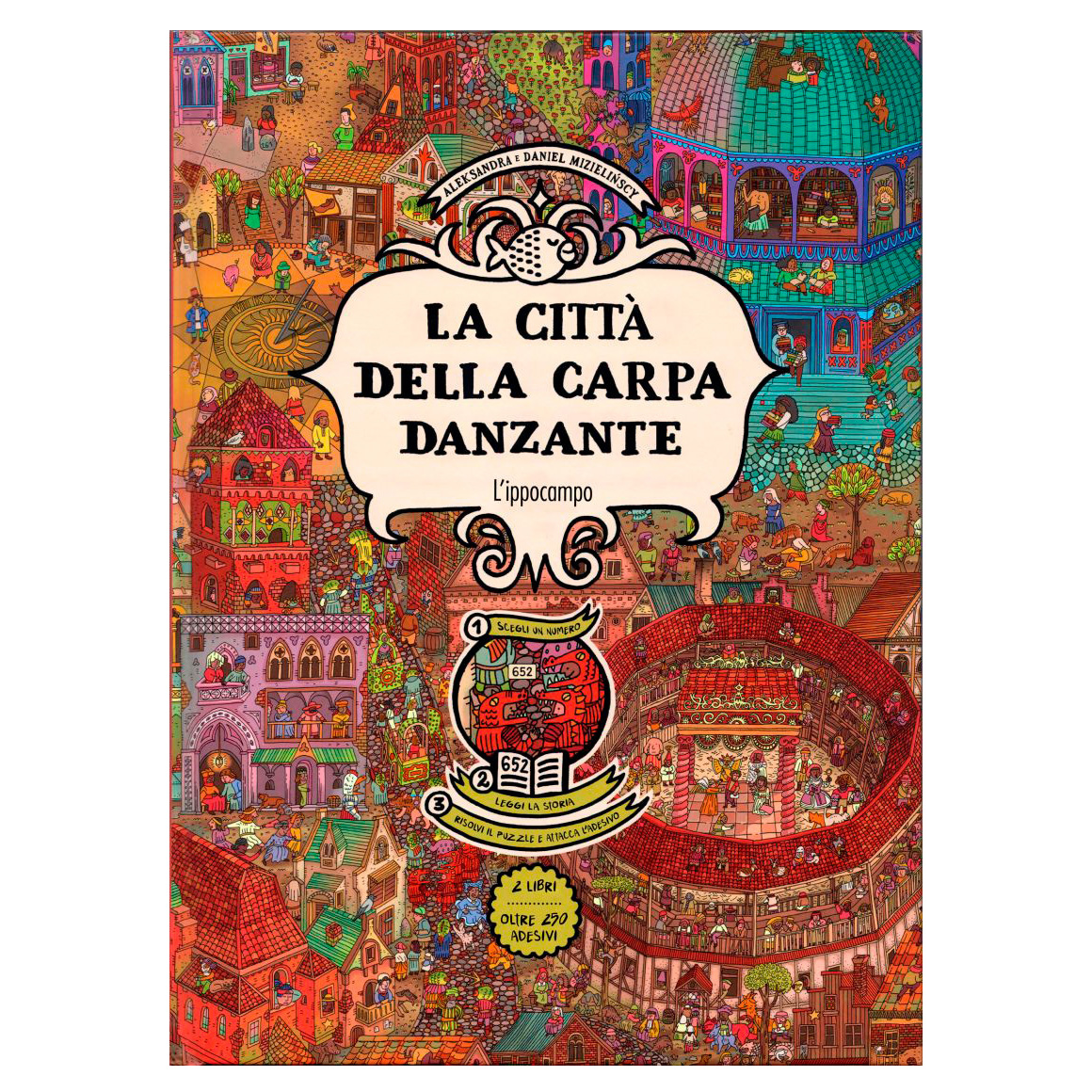 Racchiuso in un pratico ed elegante cofanetto, ecco il nuovo e ambizioso progetto del duo Mizielińska & Mizieliński (i mitici autori di Mappe!). Un libro fatto per giocare, che nasce dall’amore degli autori per i videogame. Un’avventura si dipana tra i vicoli di una città labirintica e misteriosa, dove è in procinto di cominciare il grande Festival dell’Orangotango a Sette Braccia! Per giocare, prendi il libro illustrato e cerca le scene che ti incuriosiscono. Non c’è un ordine da seguire! Se accanto a una figura trovi un numero, significa che ha qualcosa da dirti. Prendi il libro del Viandante e vai al paragrafo relativo. Adesivi ed elenchi ti aiuteranno a tenere traccia dei tuoi progressi!