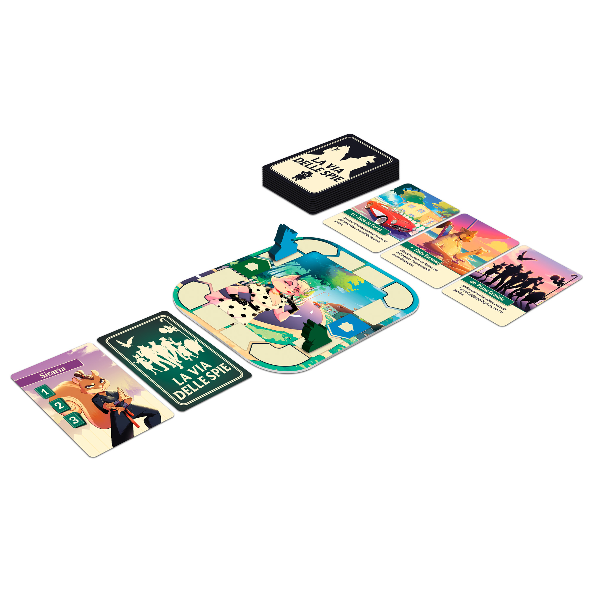Puro bluff e scelte tattiche pwer questa veloce sfida per 2-4-giocatori: le carte determinano il movimento degli agentispia o introducono effetti speciali potenzialmente pericolosi. A ogni turno, un giocatore posizizona due carte, una scoperta e una coperta, e l'avversario deve sceglierne una, lasciando l'altra al giocatore di turno. Per 2-4 giocatori da 7 anni, durata circa 10-15 minuti.