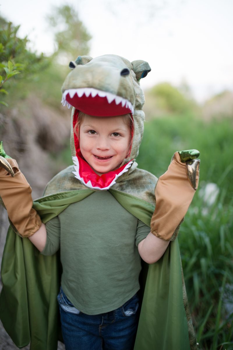 Un costume per trasformarsi nel feroce T-Rex, re di tutti i dinosauri! Il costume presenta un cappuccio dalle sembianze realistiche e la mandibola rimovibile, spine metallizzate lungo tutto il mantello e un paio di artigli. Il mantello miometico completa questo look realistico. Lavare in lavatrice a freddo con ciclo delicato, non candeggiare, asciugare all'aria, stirare a bassa temperatura.