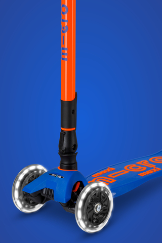 Vivaci colori neon e ruote a LED per questo monopattino dall'intuitivo meccanismo di chiusura che rende facile riporlo ovunque: in auto, sotto una sedia a scuola o in un armadietto. Continua