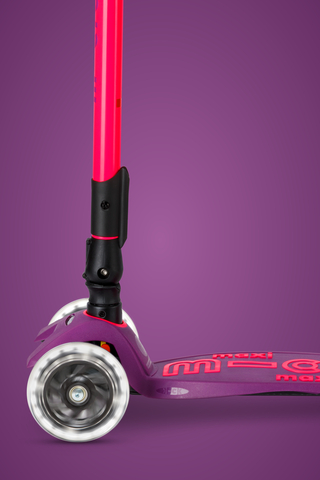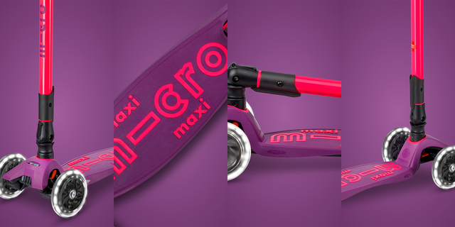 Vivaci colori neon e ruote a LED per questo monopattino dall'intuitivo meccanismo di chiusura che rende facile riporlo ovunque: in auto, sotto una sedia a scuola o in un armadietto. Continua