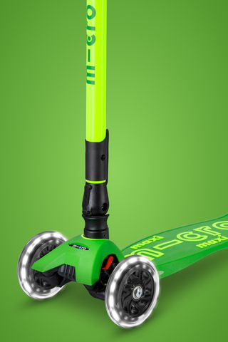 Vivaci colori neon e ruote a LED per questo monopattino dall'intuitivo meccanismo di chiusura che rende facile riporlo ovunque: in auto, sotto una sedia a scuola o in un armadietto. Continua