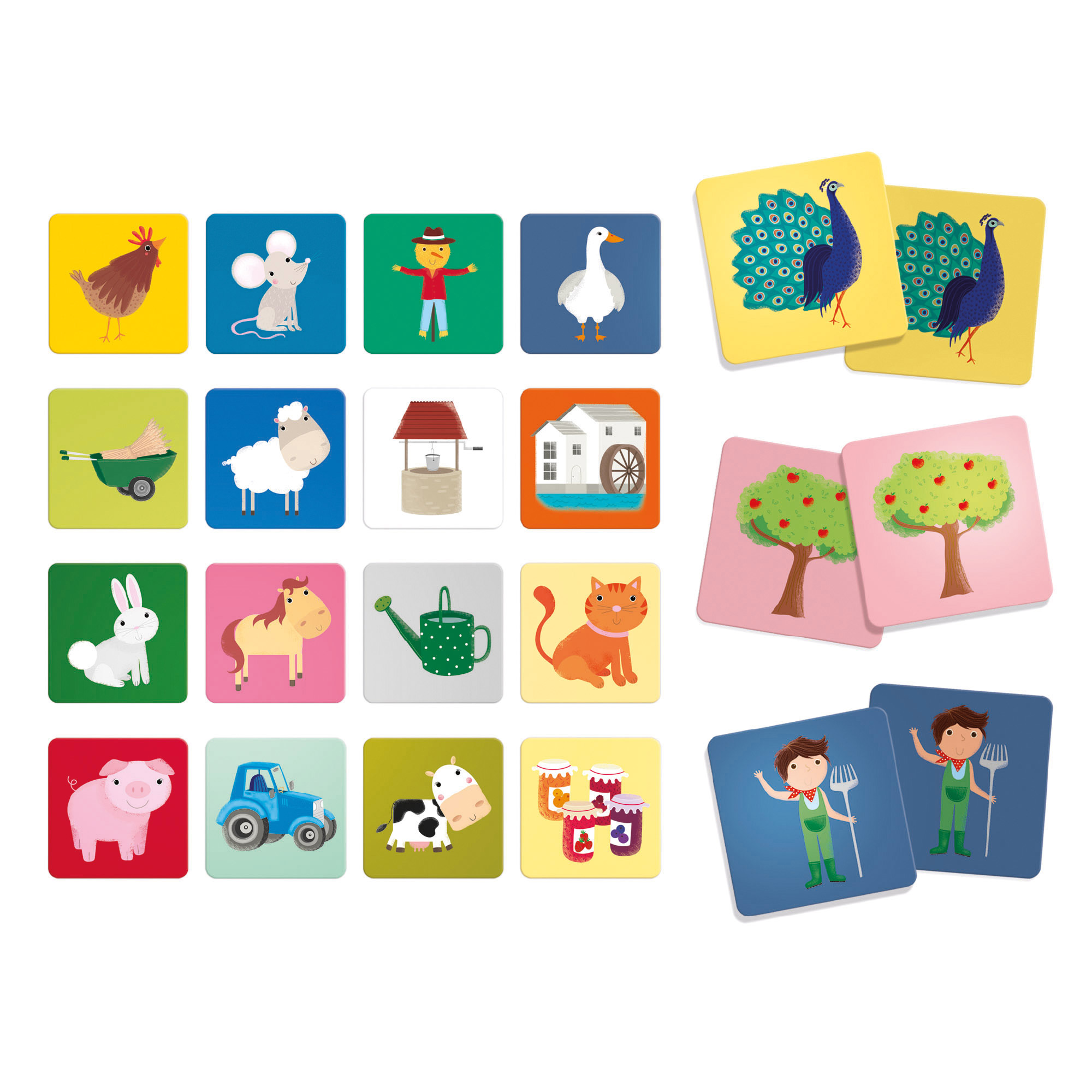 Il classico gioco del memory con tessere in cartone e personaggi della fattoria da abbinare. Un gioco di memoria dedicato ai bambini più piccoli. Forma le coppie e scopri tanti oggetti e animali che puoi incontrare in un'allegra fattoria.