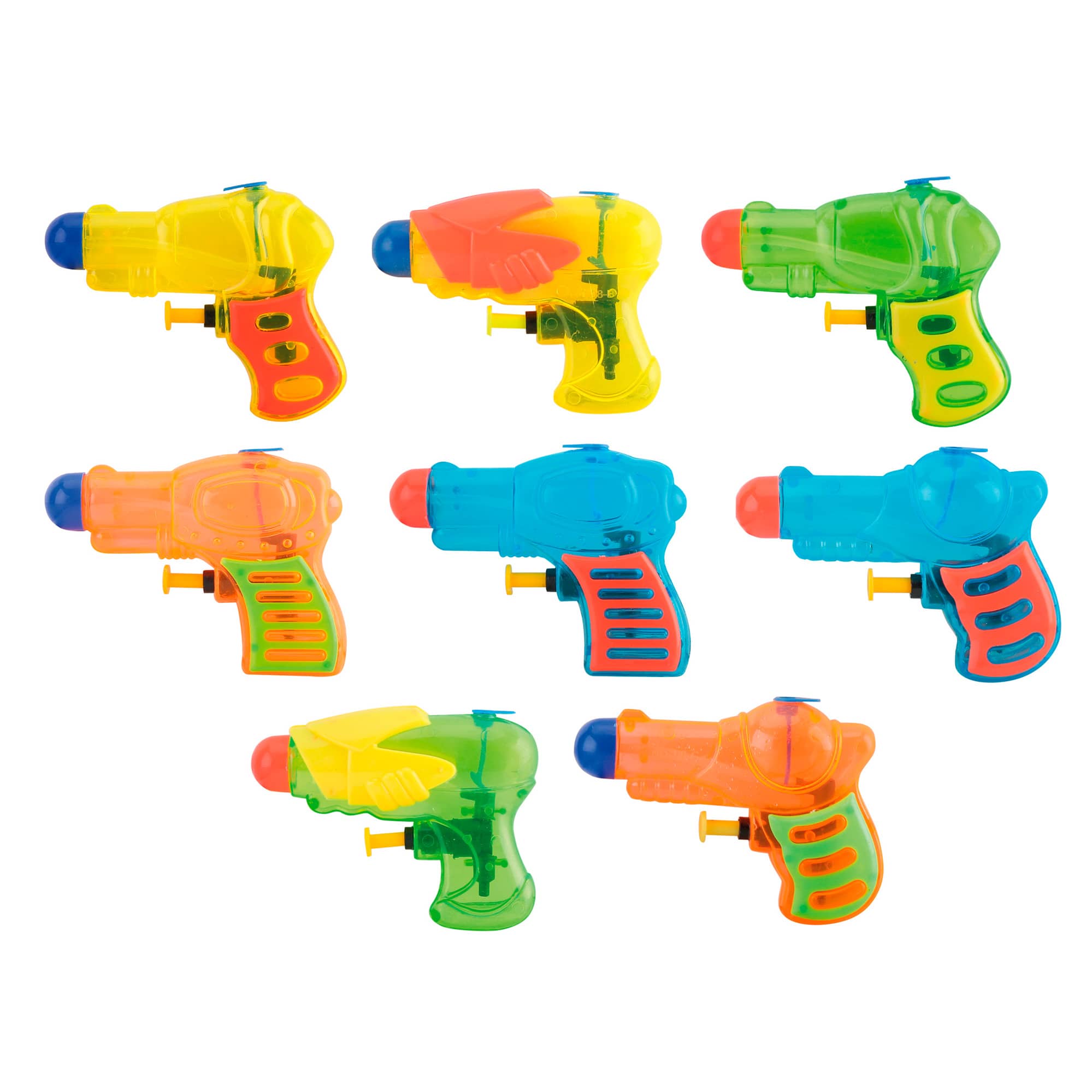 Piccole il giusto, queste colorate pistole ad acqua trasparenti sono perfette per le piccole mani. Il gioco non richiede spiegazioni: basta riempirle d'acqua per dare vita a una divertente battaglia di spruzzi!