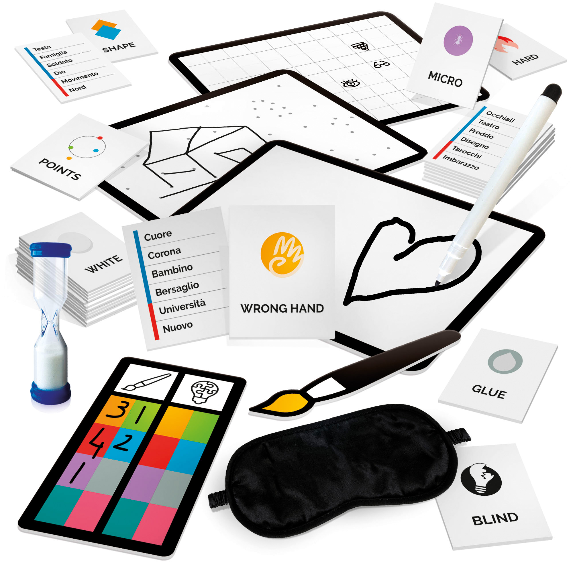 Un party game con due vincitori: il maestro di pennello e il maestro di arguzia. Il primo sarà il più bravo a far indovinare il significato dei suoi disegni agli altri giocatori, il secondo invece quello che ne avrà indovinati il maggior numero. Per 3-8 giocatori, durata circa 30 minuti.