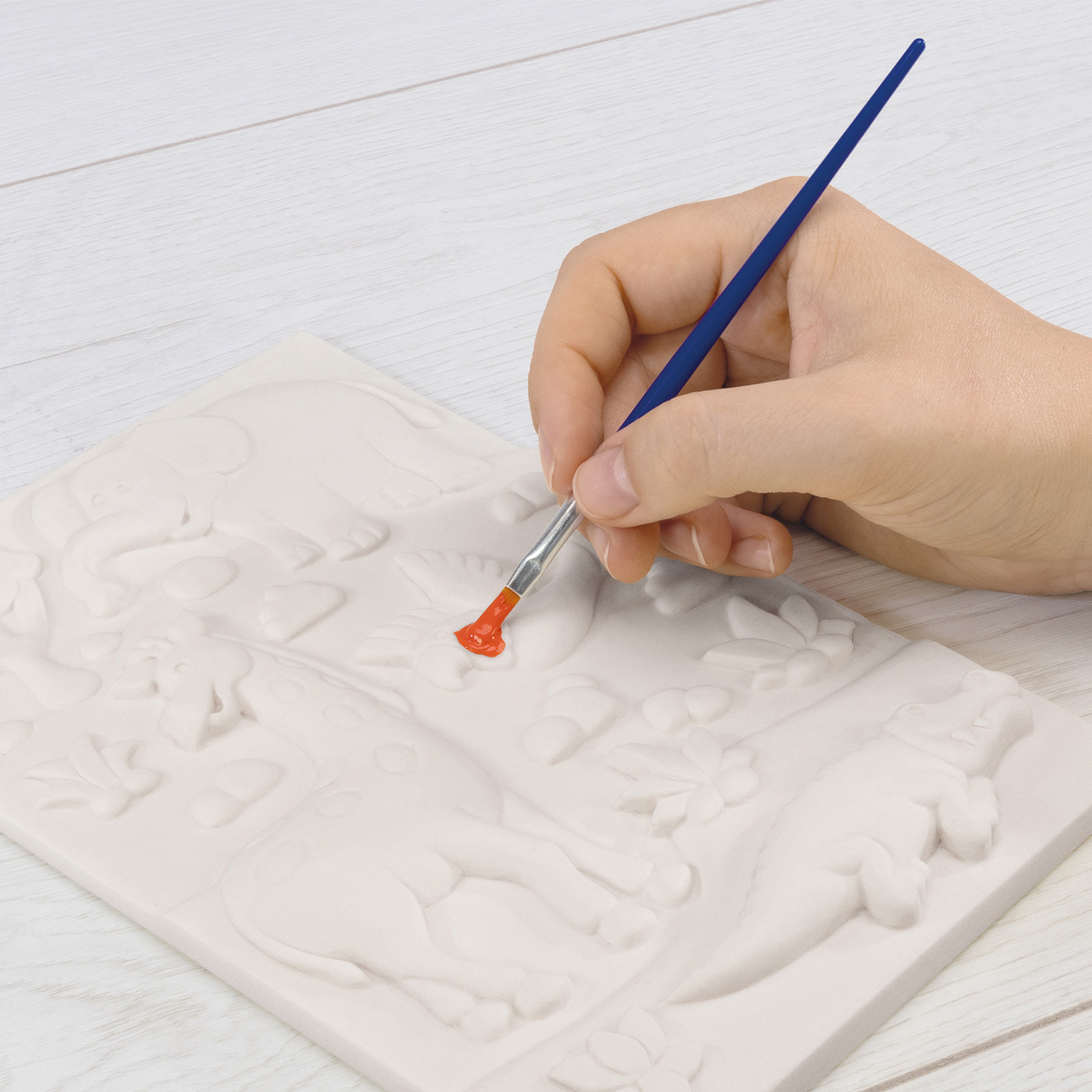 Un sistema di tavolette in rilievo che permette di dipingere quadretti a effetto 3D, seguendo la guida dei colori. Ogni confezione contiene un quadretto e 10 colori a pennello. Continua
