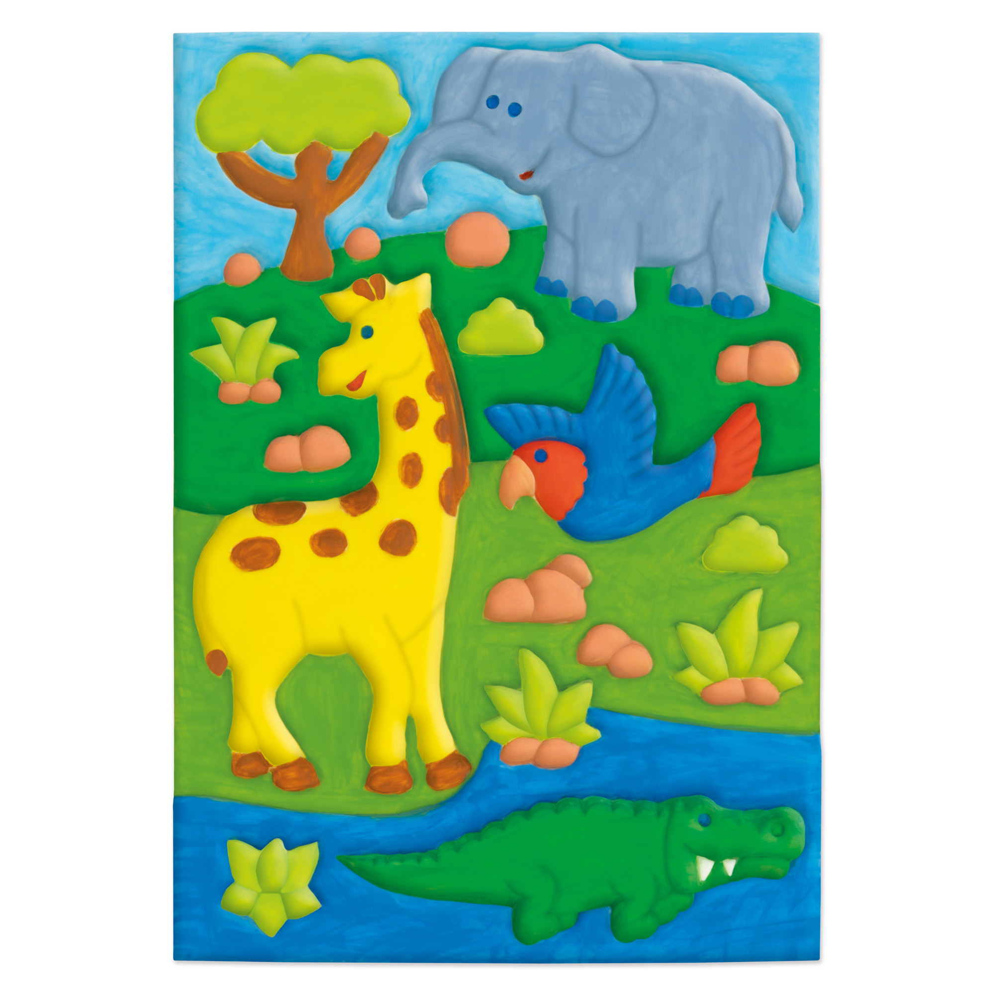 Un sistema di tavolette in rilievo che permette di dipingere quadretti a effetto 3D, seguendo la guida dei colori. Ogni confezione contiene un quadretto e 10 colori a pennello.