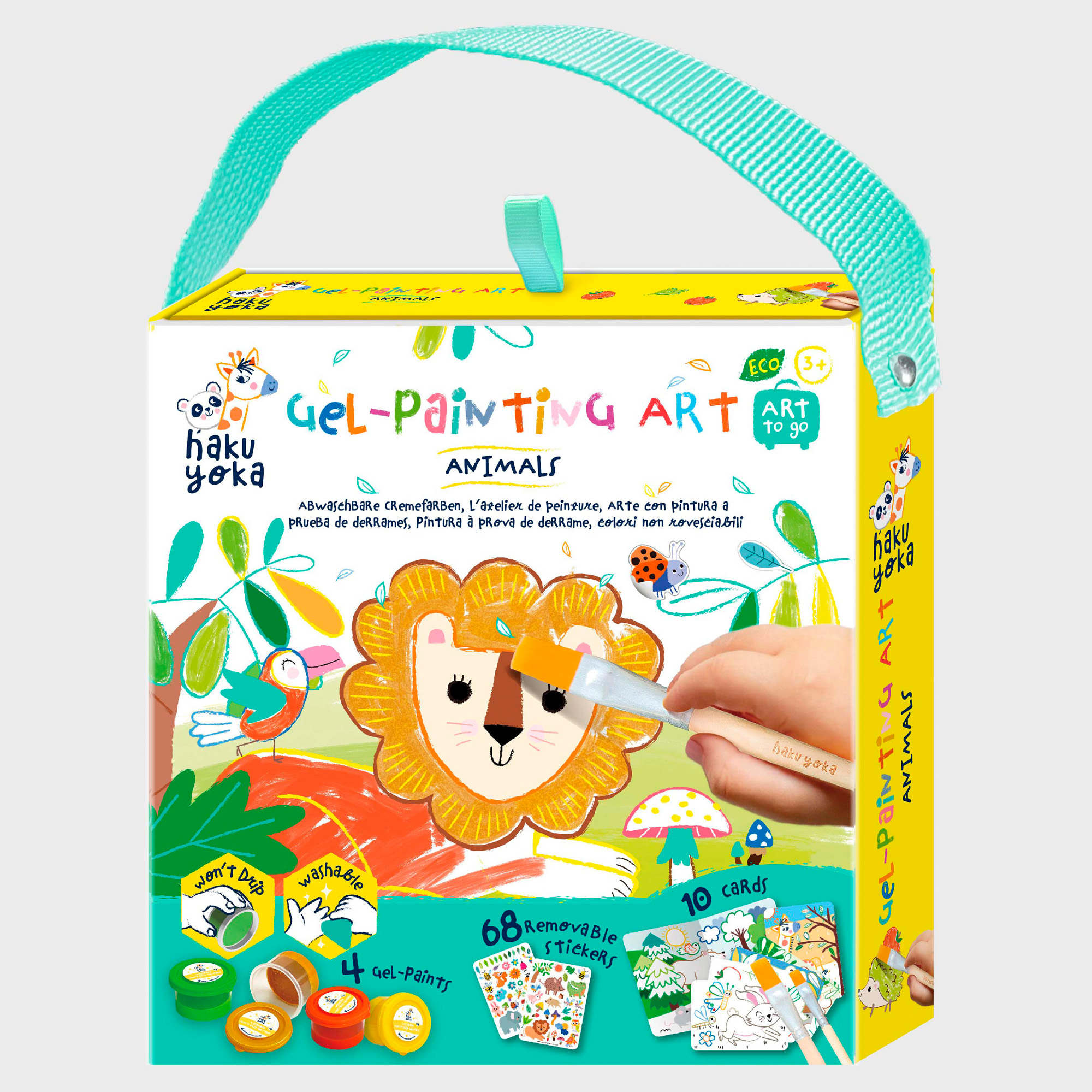 Il kit perfetto per scatenare la creatività, con 10 schede da colorare a tema animali della foresta, 65 adesivi removibili, 4 colori che non colano, super lavabili e facili da usare.