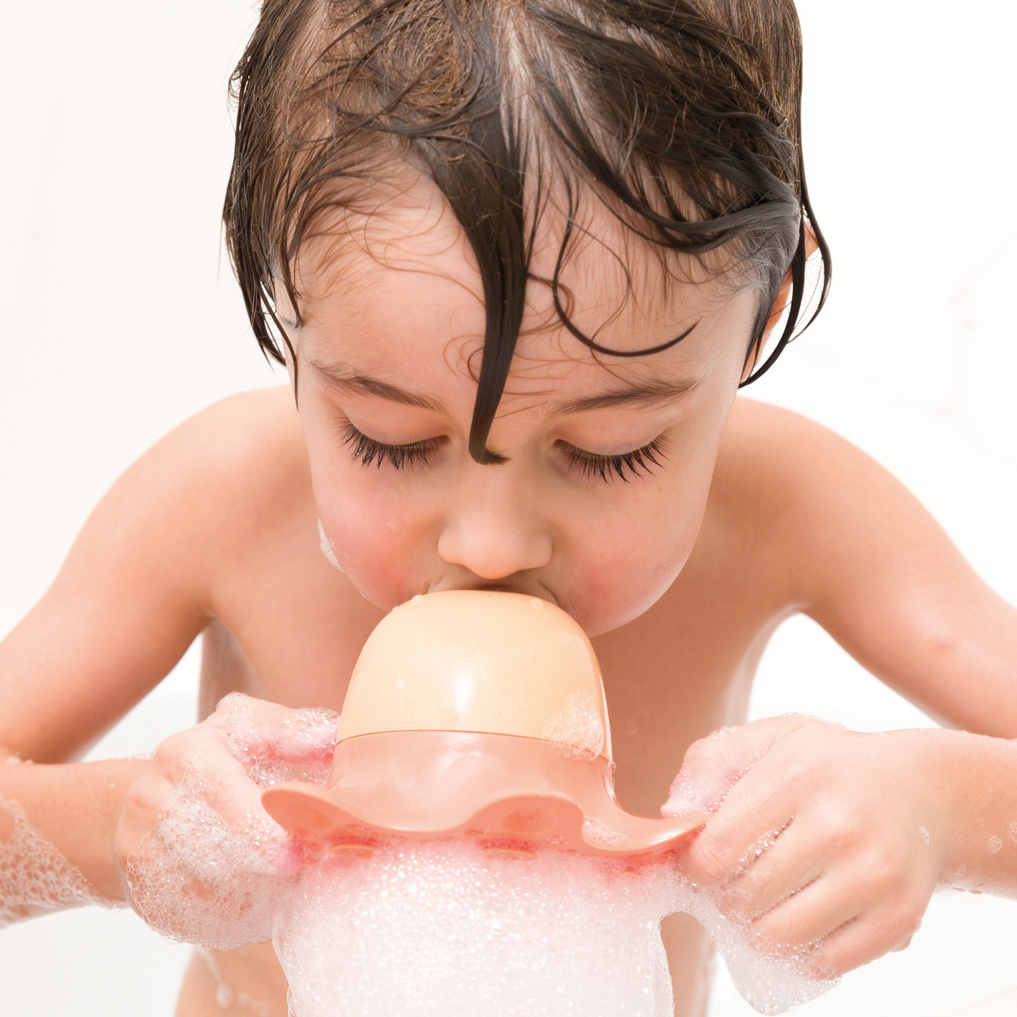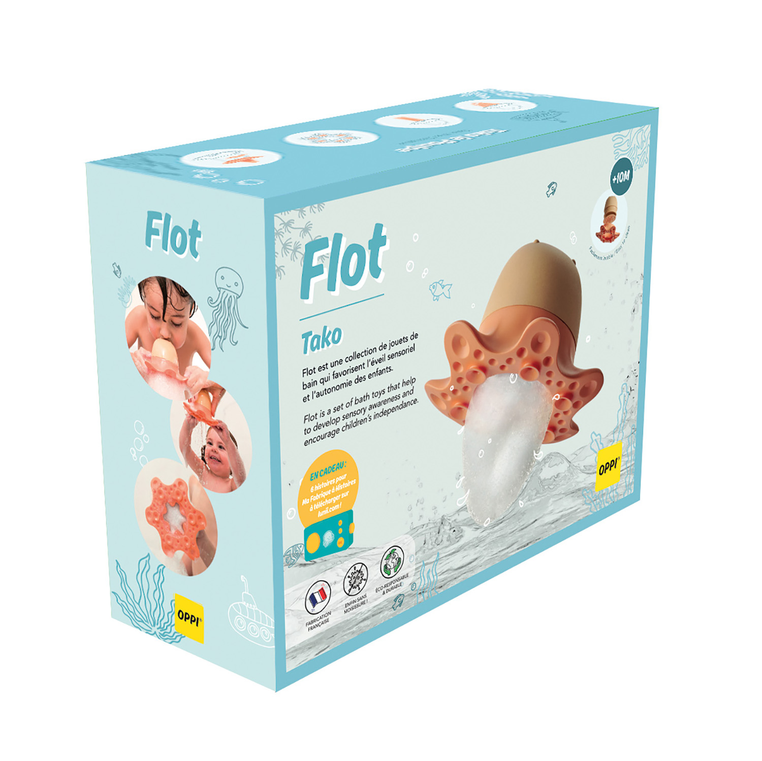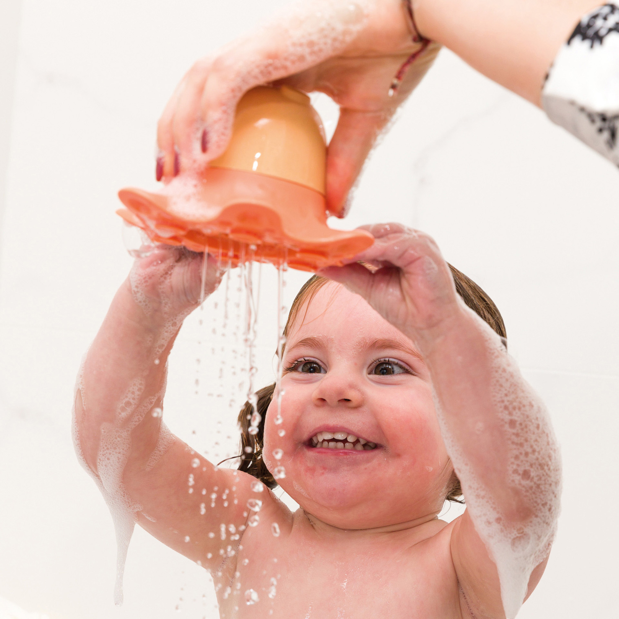 Tako il polpo è un gioco da bagno davvero speciale, con cui i bambini possono sperimentare l'apprendimento dell'igiene in totale autonomia. Grazie alla sua forma particolare offre anche interessanti stimoli sensoriali: è possibile utilizzarlo per creare la schiuma e far cadere una delicata pioggia. Le pratiche ventose permettono di appenderlo facilmente, mentre le due parti separabili facilitano il lavaggio e l'asciugatura, evitando l'accumulo di muffe e batteri. E' inotre progettato in maniera sostenibile, essendo realizzato in due parti, una di materiale naturale di origine biologica 100% (scarti di fibre di legno), l'altra con materiale morbido, riciclabile e atossico. Le membrane in cotone per la creazione di schiuma possono essere lavate in lavatrice per garantire la massima igiene. E' adatto a partire dai 10 mesi.