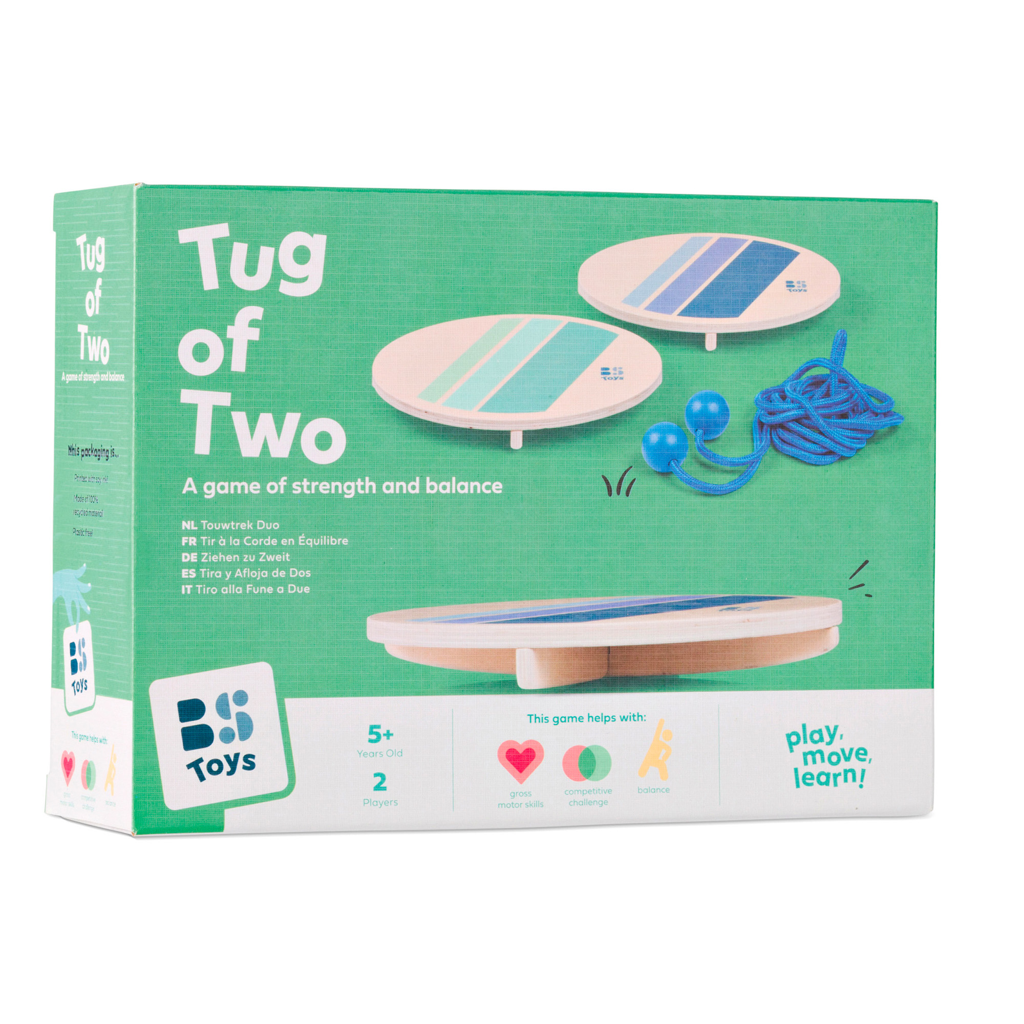Due solide basi in legno basculanti e una corda, per un classico gioco di equilibrio e sfida a due. Chi si fermerà o cadrà per primo dalla base? Un gioco che sviluppa le abilità motorie di base, l'equilibrio e lo spirito di competizione. perfetto da utilizzare sia in casa che all'aperto, è ideale in giardino, in spiaggia o in piscina.