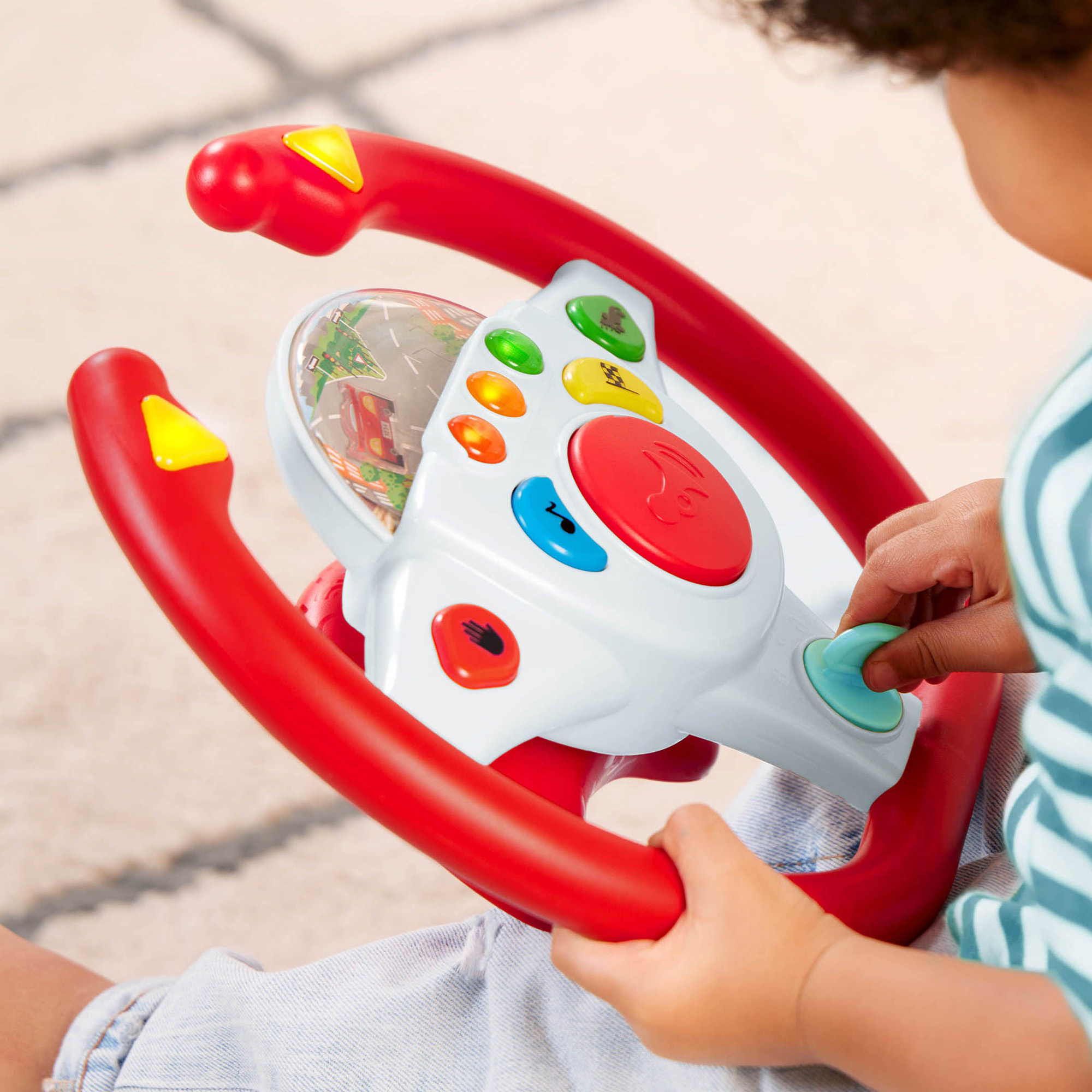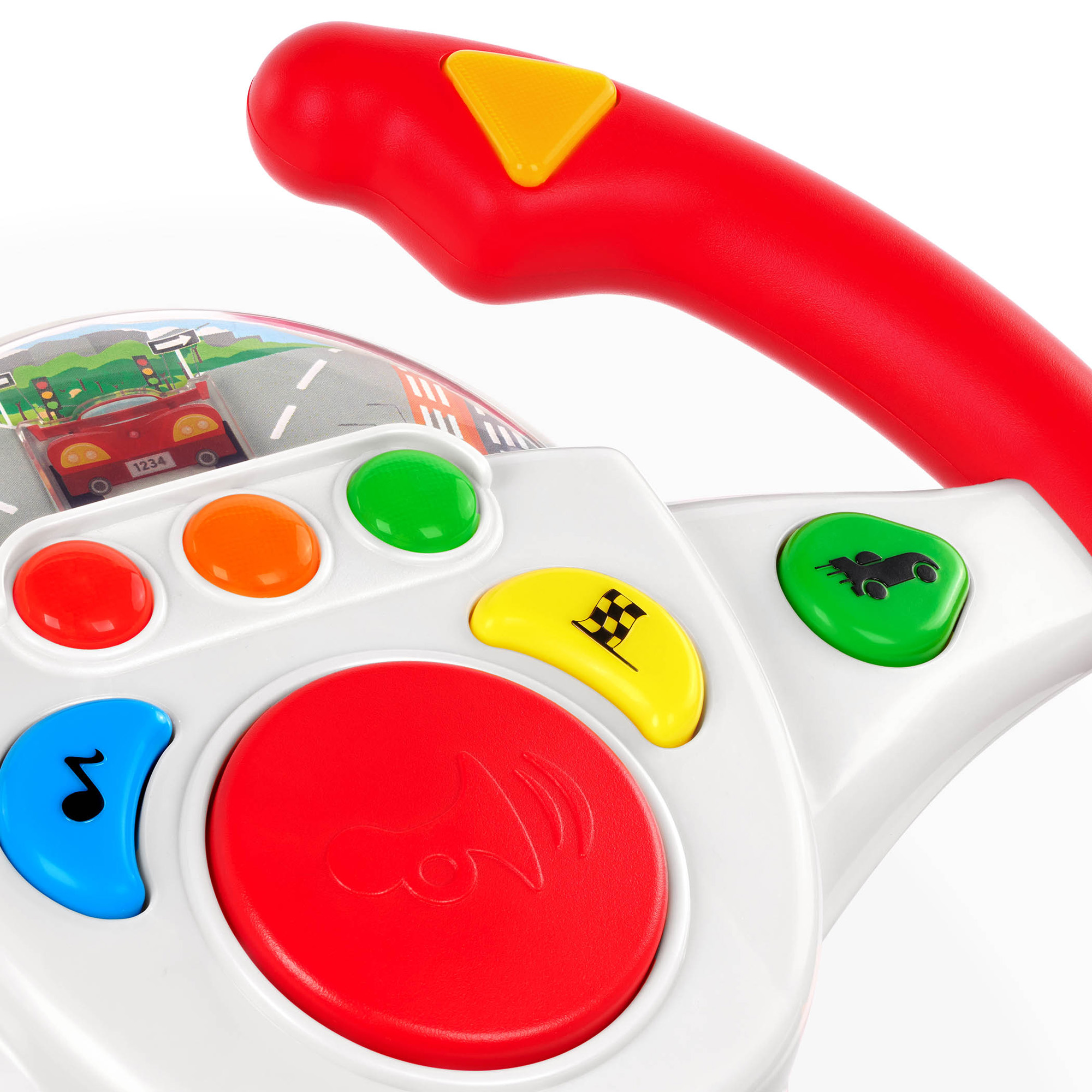 Volante interattivo con luci e suoni: girando il volante, l'auto sul display si muove per simulare la guida, perfetto per i viaggi in auto. Clacson, pulsante rosso (STOP), pulsante verde... Continua