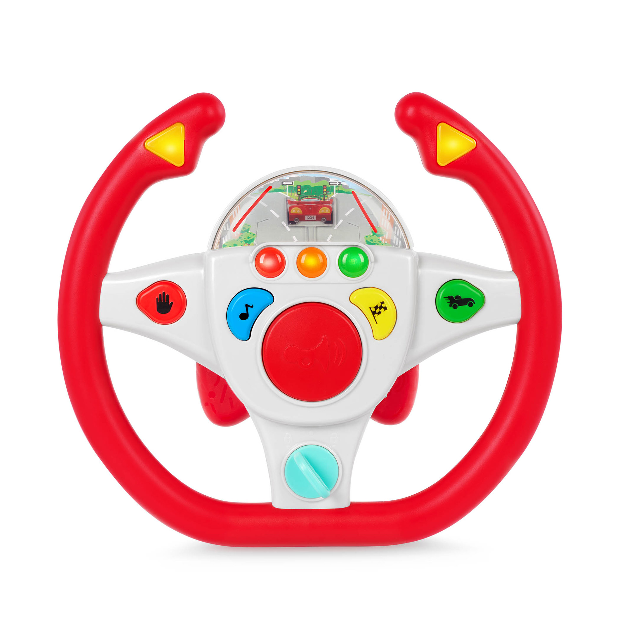Volante interattivo con luci e suoni: girando il volante, l'auto sul display si muove per simulare la guida, perfetto per i viaggi in auto.