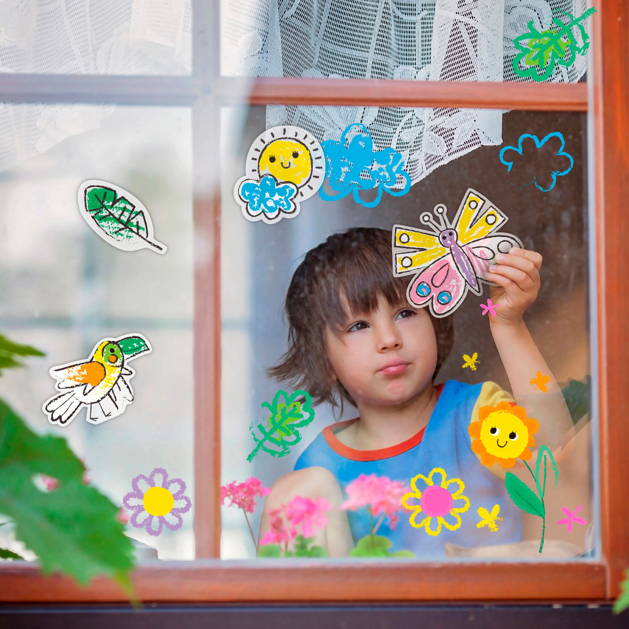 Adesivi trasparenti predisegnati e morbidi pastelli, tutti lavabilissimi, per colorare su vetri e specchi. Ogni adesivo trasparente è riutilizzabile più e più volte, per... Continua