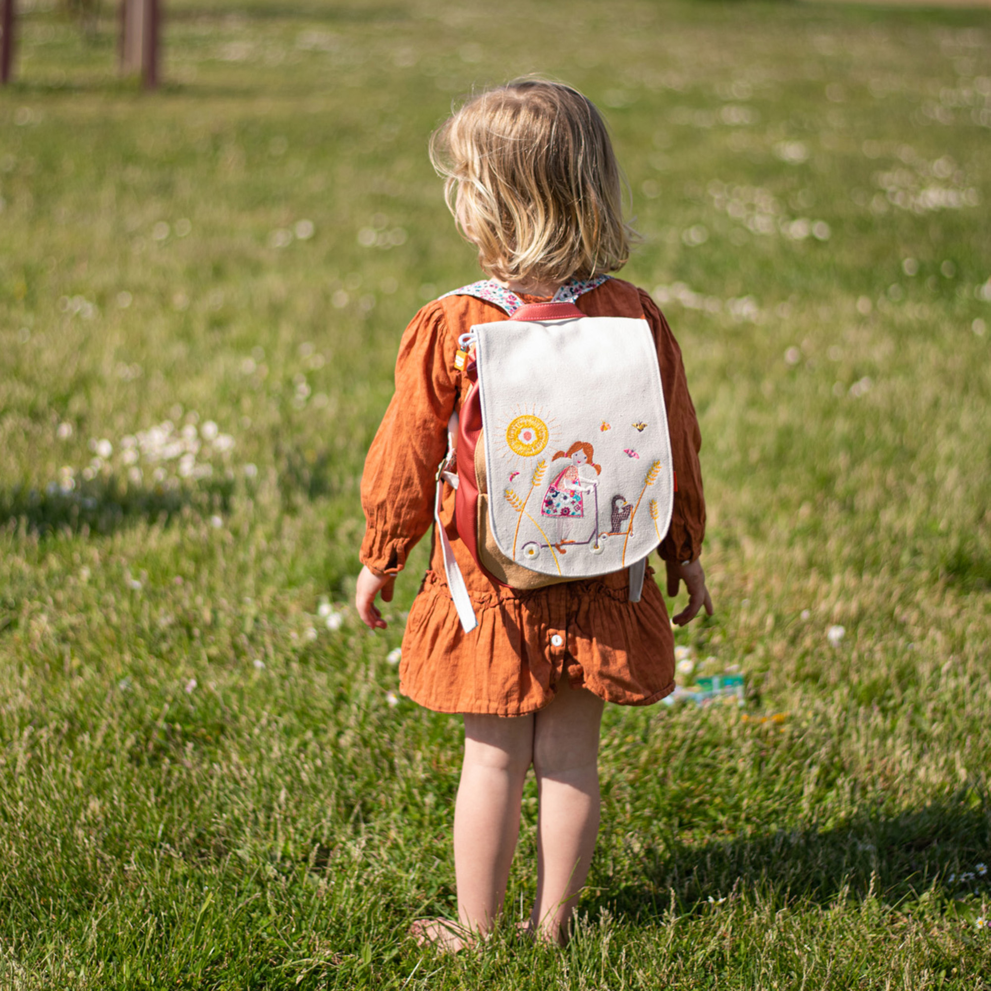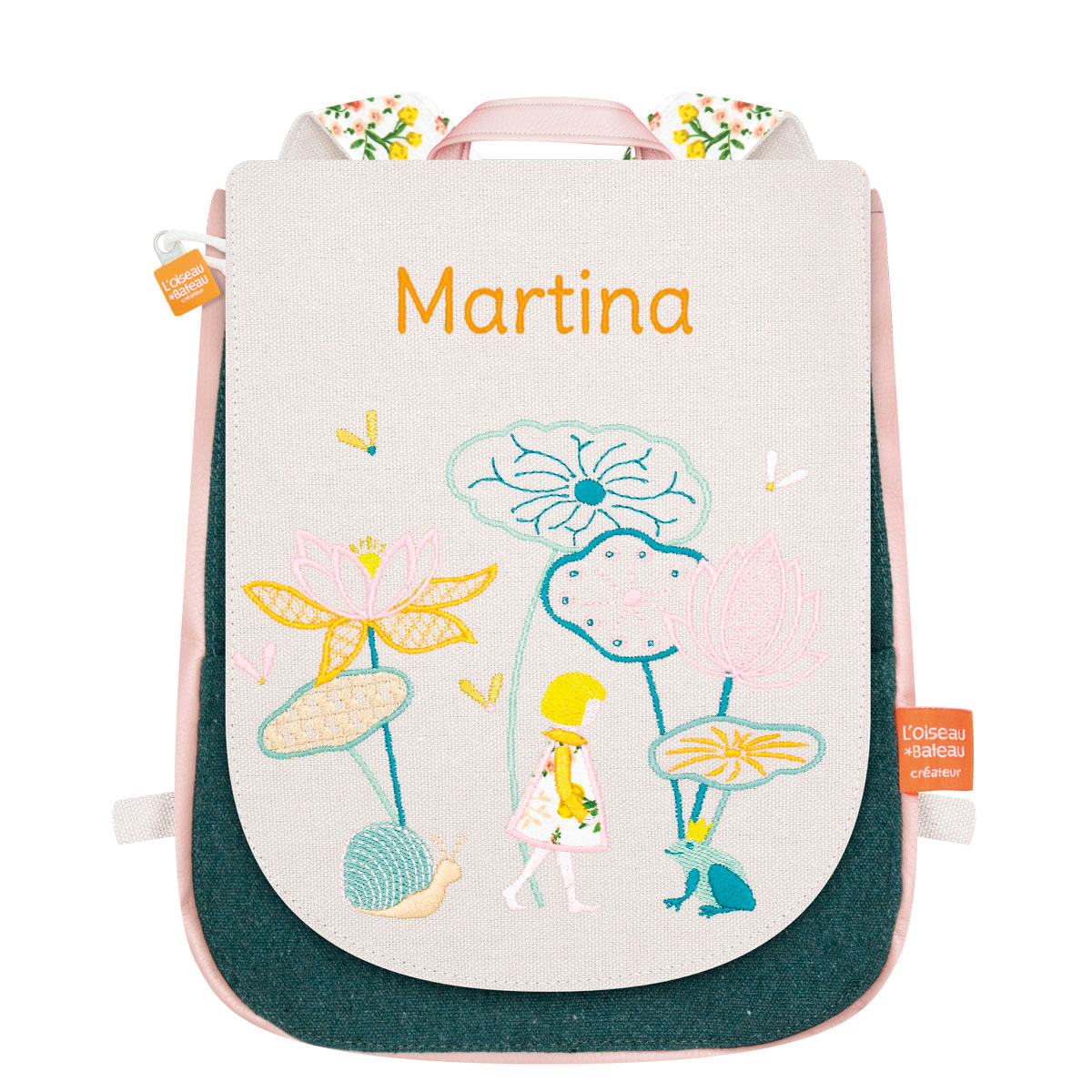 Zainetto personalizzabile con il nome del bambino ricamato, regalo ideale per la nascita, il nido o l’asilo. Lo zainetto resistente è realizzato in diversi materiali: cotone per tasche, fronte, schiena e bretelle, similpelle per il lato soffietto. 85% cotone, 15% poliestere. È dotato di una tasca sulla parte anteriore, di una chiusura a cordoncino e fermo in Velcro; le bretelline colorate sono regolabili tramite fibbie passanti. Lavabile in lavatrice a 30°C. Il colore della scritta è puramente dimostrativo, e può variare rispetto all’immagine. Made in France.