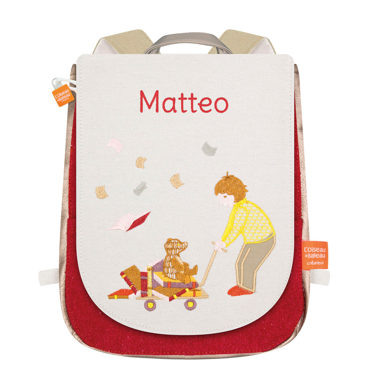 Zainetto personalizzabile con il nome del bambino ricamato, regalo ideale per la nascita, il nido o l’asilo. Lo zainetto resistente è realizzato in diversi materiali: cotone per tasche, fronte, schiena e bretelle, similpelle per il lato soffietto. 85% cotone, 15% poliestere. È dotato di una tasca sulla parte anteriore, di una chiusura a cordoncino e fermo in Velcro; le bretelline colorate sono regolabili tramite fibbie passanti. Lavabile in lavatrice a 30°C. Il colore della scritta è puramente dimostrativo, e può variare rispetto all’immagine. Made in France.