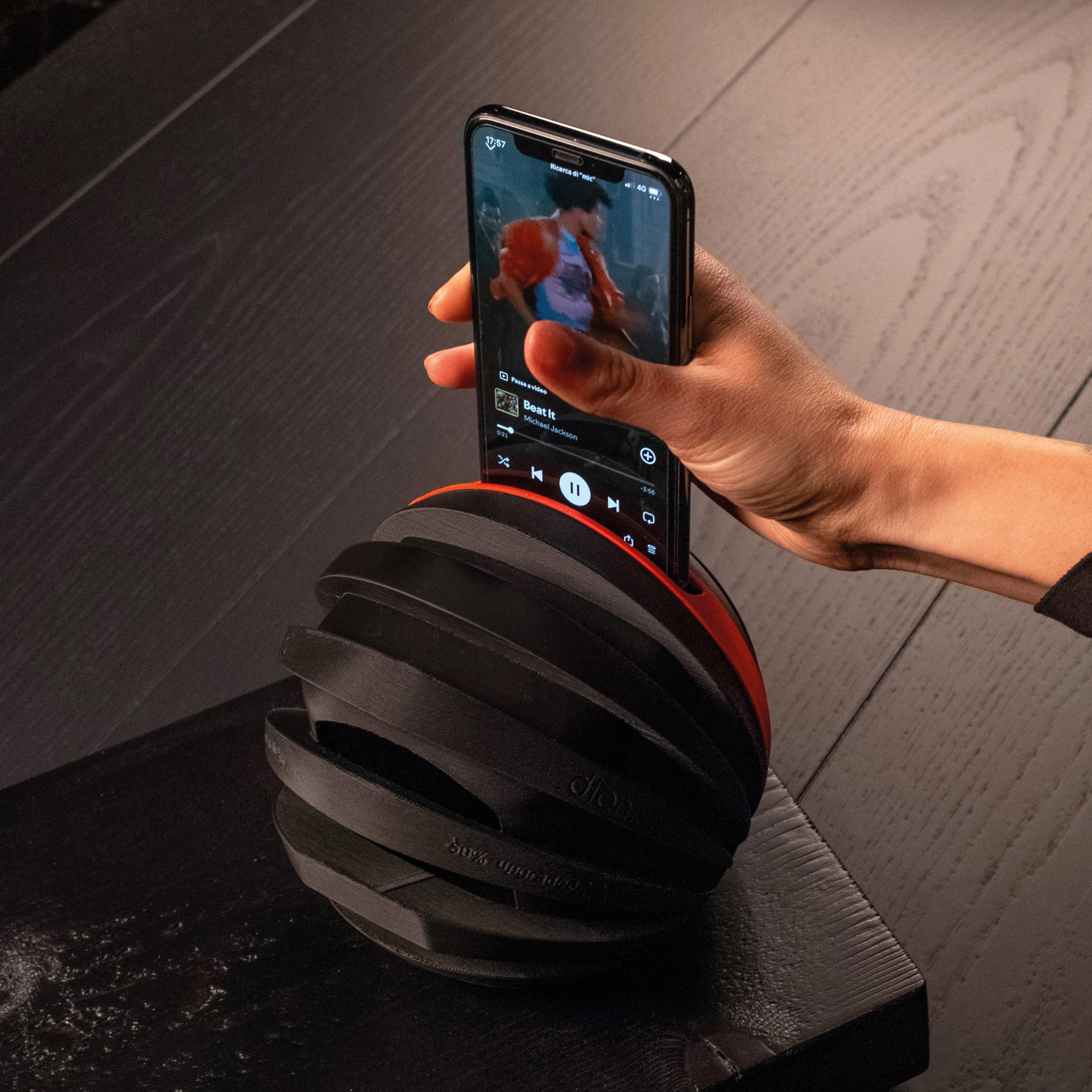 Diffusore acustico per smartphone in zantech, compound tecnico a base di “g_upgraded recycled graphite”, dionisio è composto di 3 moduli assemblati senza utilizzo di collanti.... Continua